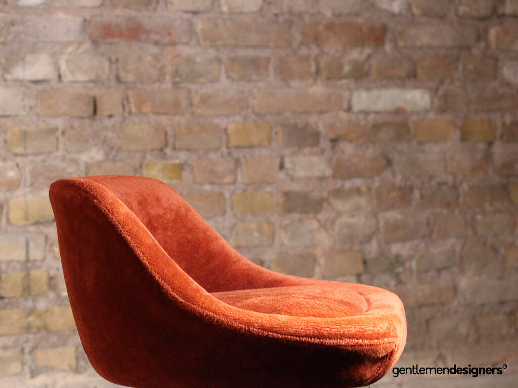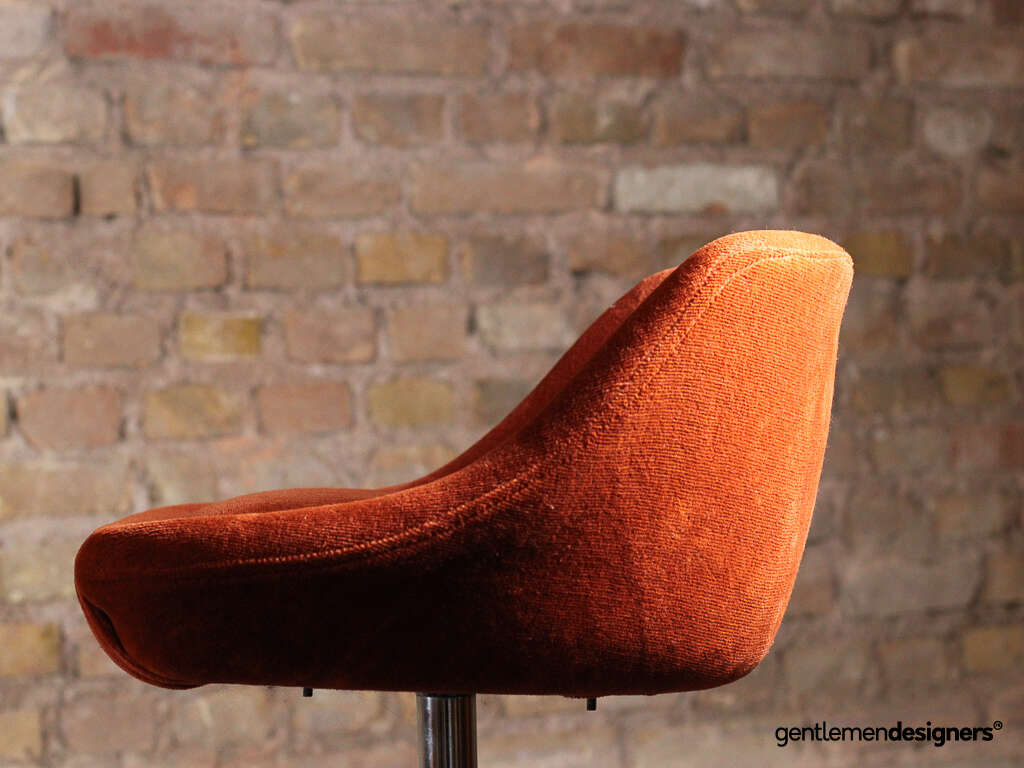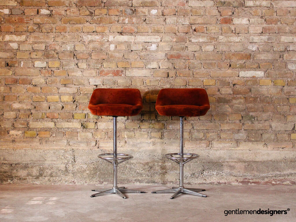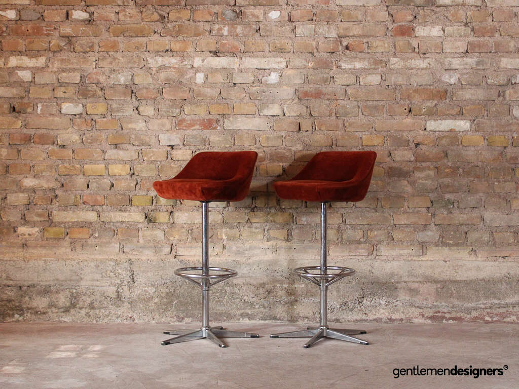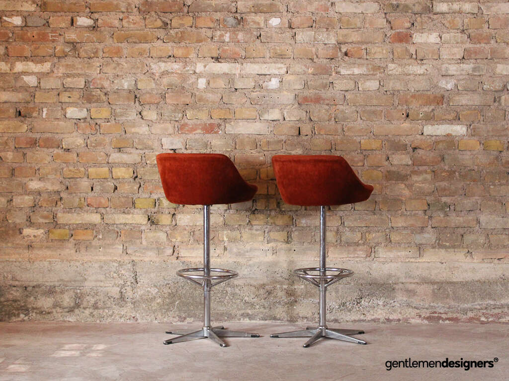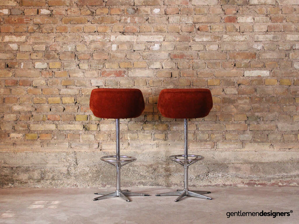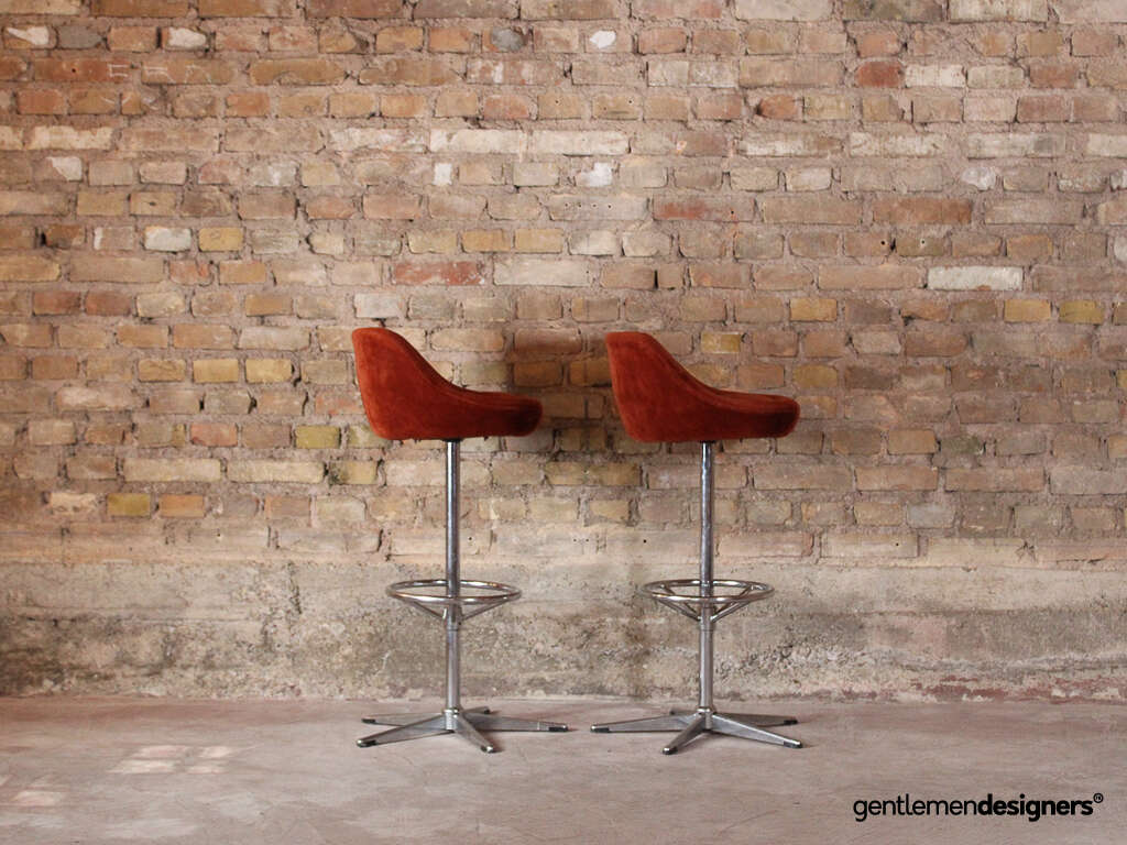 2 tabourets de bar vintage en velours terracotta et pieds acier chromé