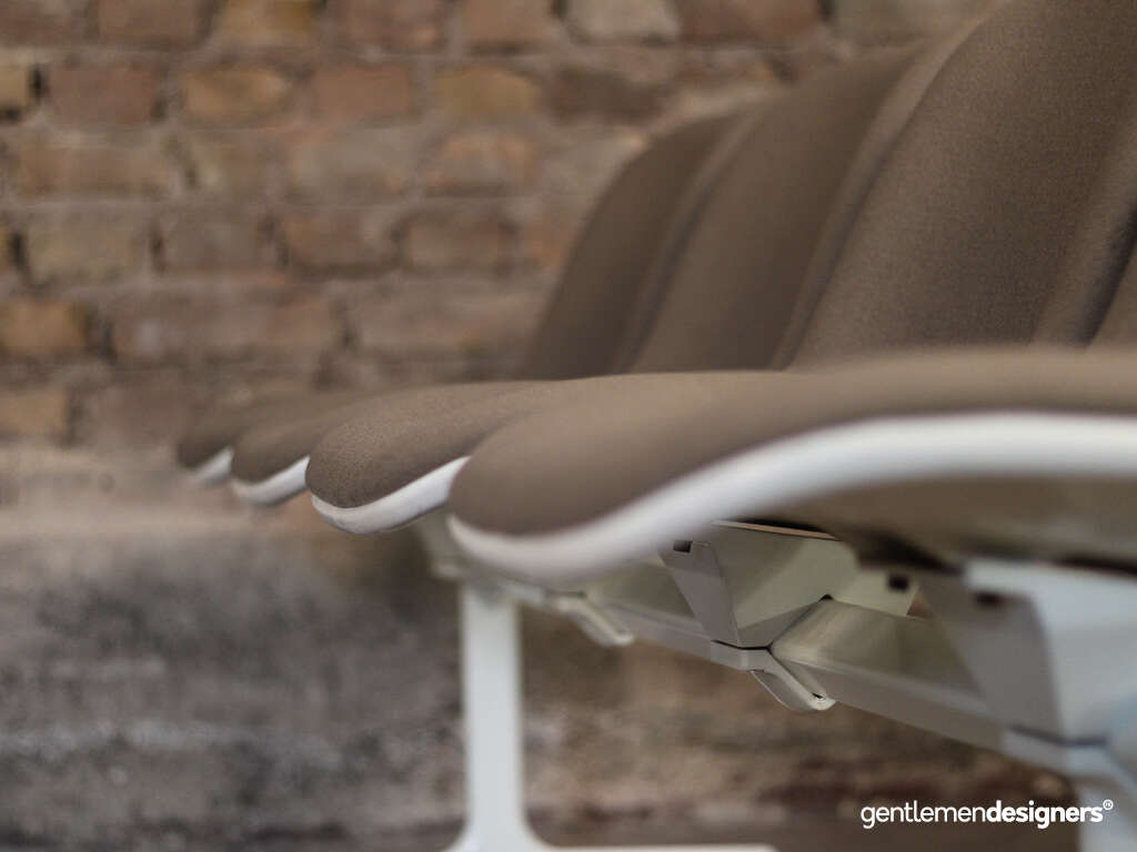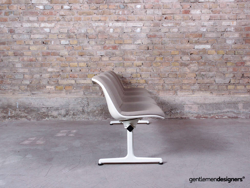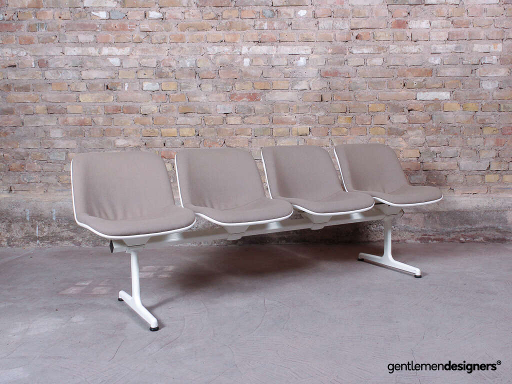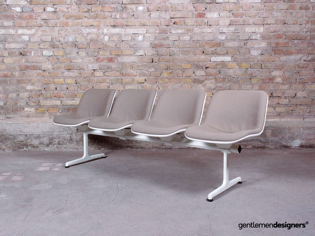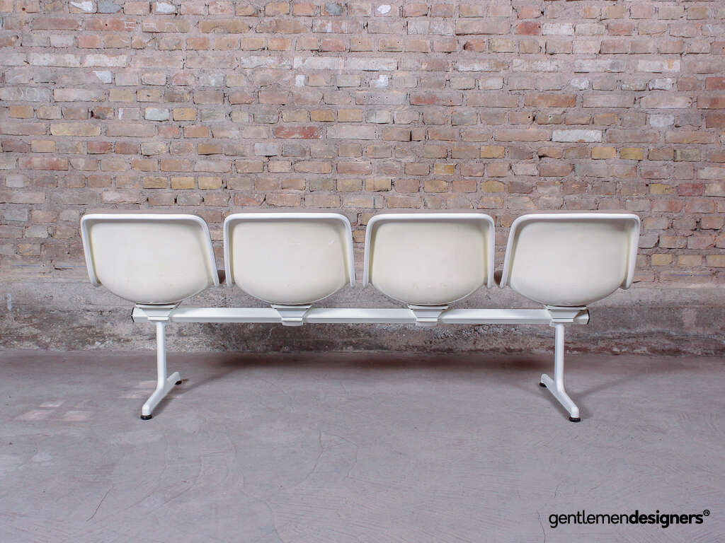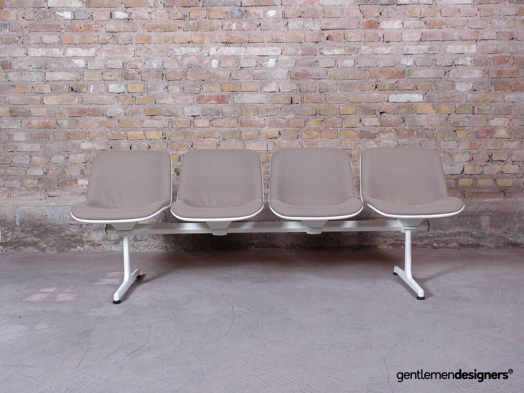 Accueil » Produits » Meubles vintage » Banc d’aéroport 4 places, en acier blanc et tissu crème, circa 1980