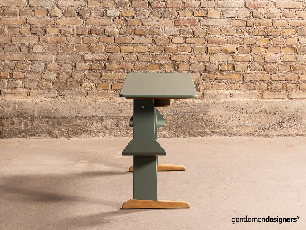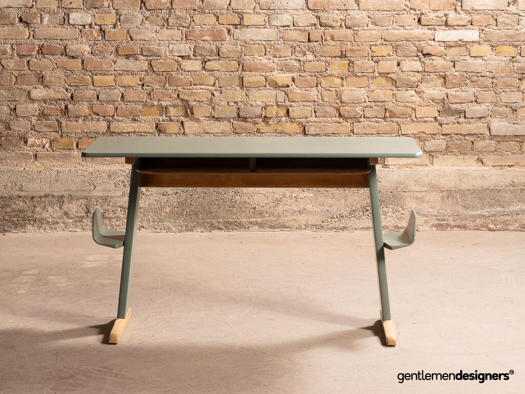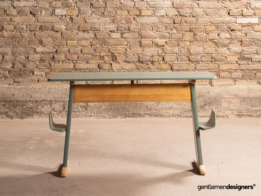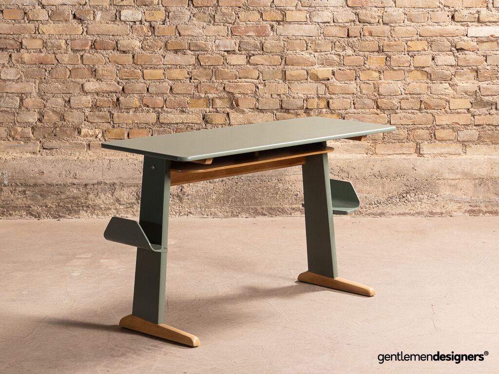 Accueil » Produits » Meubles vintage » Bureau, secrétaire, console » Bureau d’écolier Casala en hêtre massif rénové et relooké, circa 1960