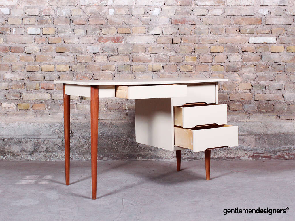 Un concentré de douceur… Laissez-vous charmer par ce petit bureau à l’harmonie parfaite entre la chaleur du teck et la douceur de la crème !