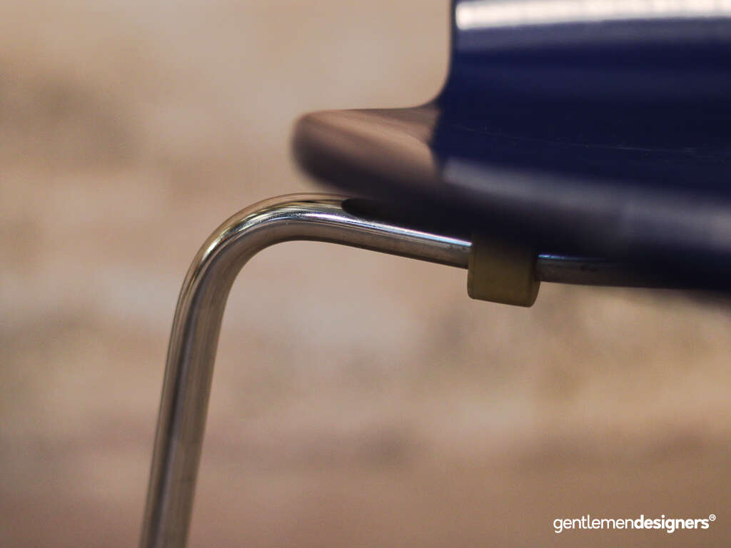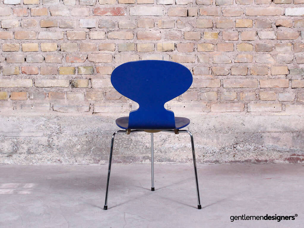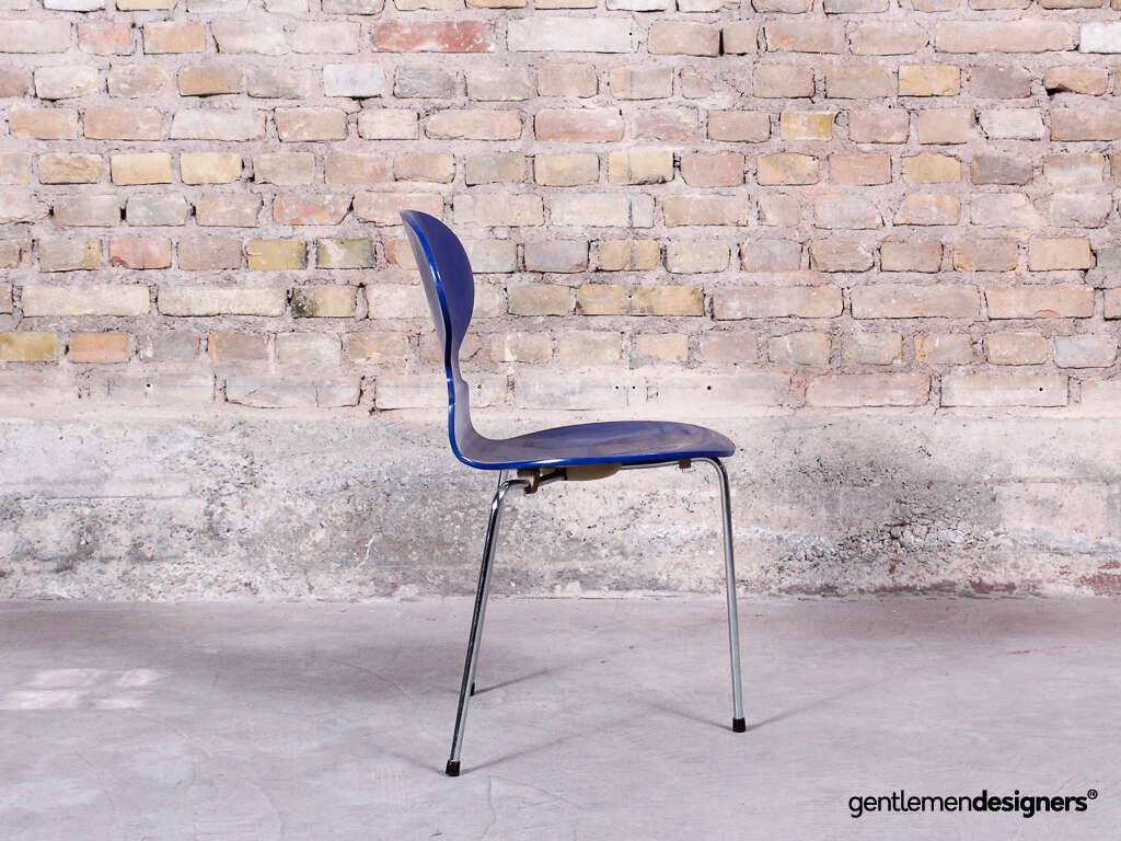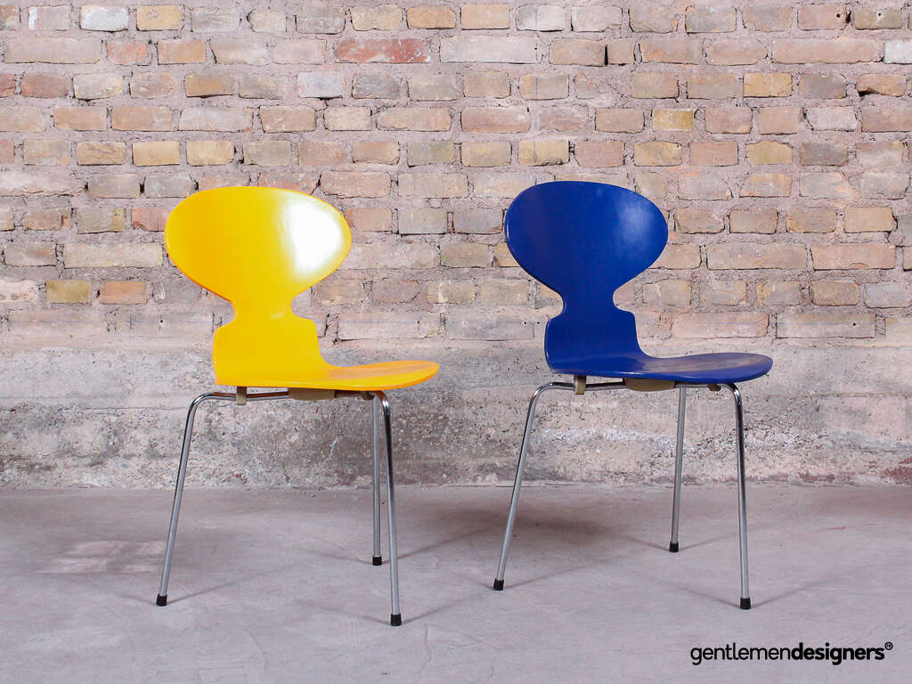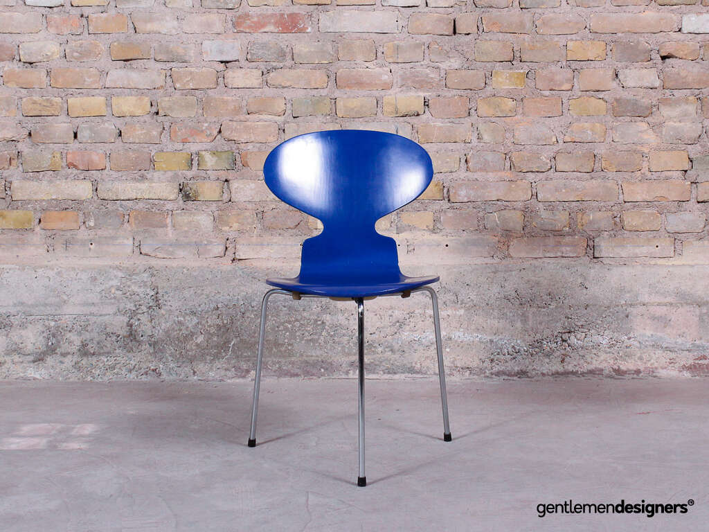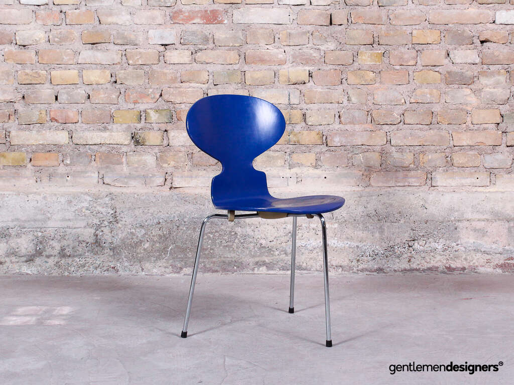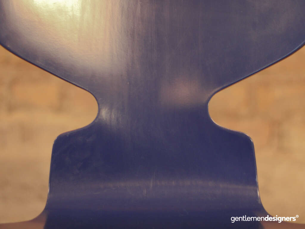 Designer : Arne Jacobsen, pendant plus de la moitié du XXe siècle, les idées d’Arne Jacobsen ont façonné le paysage du design danois, se propageant de la Scandinavie pour influencer les architectes et les designers du monde entier. Il a réussi à diriger des projets allant de bâtiments complexes comme la Danmarks NationalBank à des défis détaillés aussi humbles qu’une cuillère à café spéciale pour son ensemble de couverts, travaillant avec un personnel de studio relativement petit poussé par un besoin inextinguible de créer. Le processus créatif de Jacobsen était centré sur sa stricte considération des détails. Il a donné vie à ses visions pour les clients et les constructeurs avec des aquarelles scrupuleuses peintes à la main. Au cours d’une année donnée, Jacobsen a réussi à concevoir ce que d’autres pourraient être heureux de produire en cinq ans. Ant No. 3100 : La coque est pliée à la vapeur en une seule pièce composée de 9 couches de placage. Ces couches sont toujours doublées de coton indien à l’intérieur.La base est en acier chromé hauteur (43 cm). Suppléments: La fourmi est empilable – jusqu’à 12 pièces. Créée à l’origine pour la cantine de la société danoise Novo Nordisk, la Ant ™ a été présentée le jour des 80 ans de Fritz Hansen et la presse et les critiques sont tombés instantanément amoureux du design visionnaire. Fritz Hansen, d’autre part, était d’abord plus sceptique quant à la mise en production de la chaise: la conception minimaliste de la chaise à trois pieds rendait trop difficile de s’asseoir car elle s’inclinait facilement. Mais Arne Jacobsen croyait si fermement en son design qu’il a promis d’acheter chaque chaise qui n’était pas vendue. Cela a convaincu la société de mettre la chaise en production et cela depuis lors. La chaise en bois lamellé avec une base en métal s’est avérée être une étape importante pour Fritz Hansen et Arne Jacobsen.