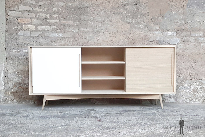 • Meuble TV en teck comprenant 2 portes anthracite et blanc