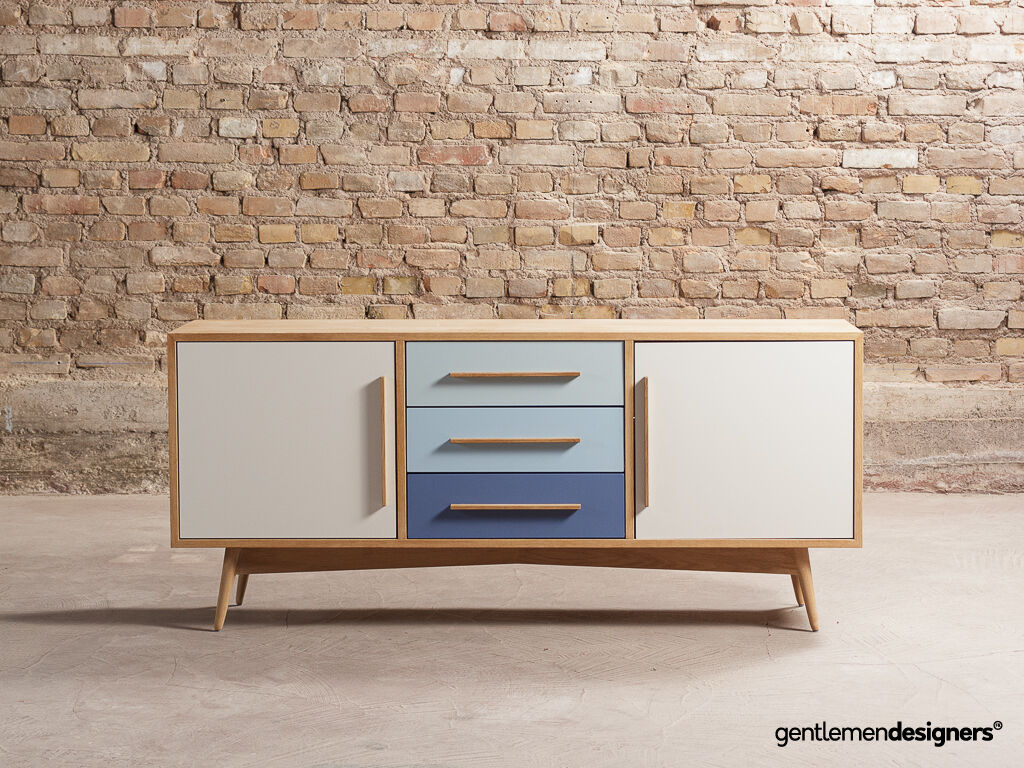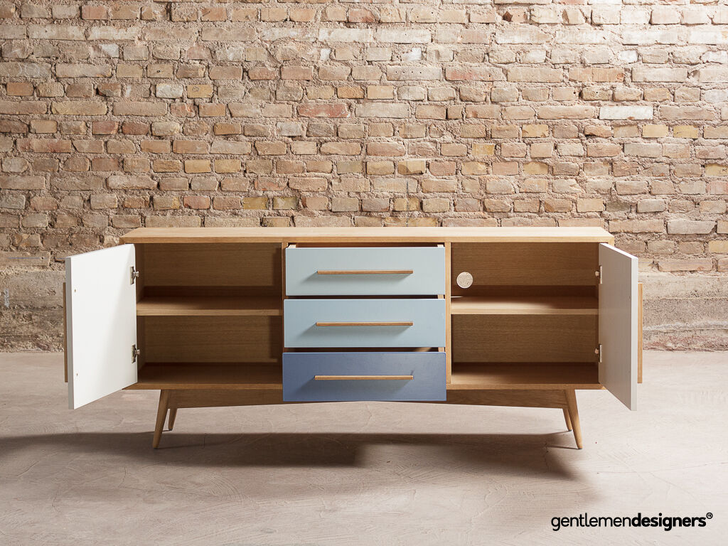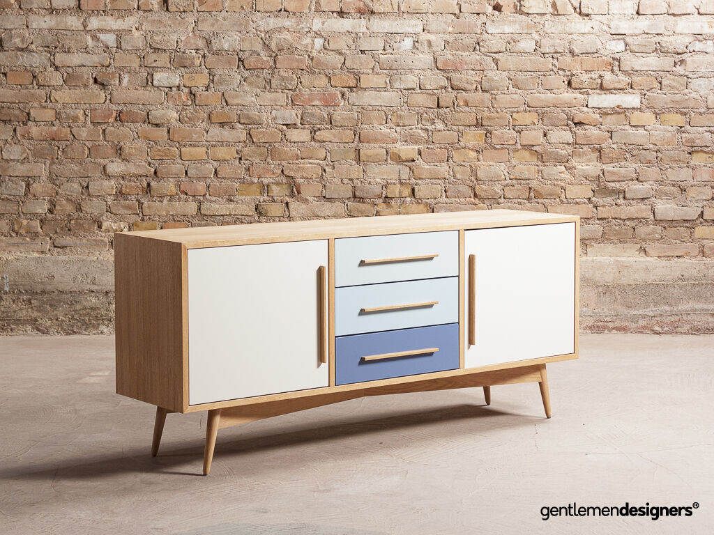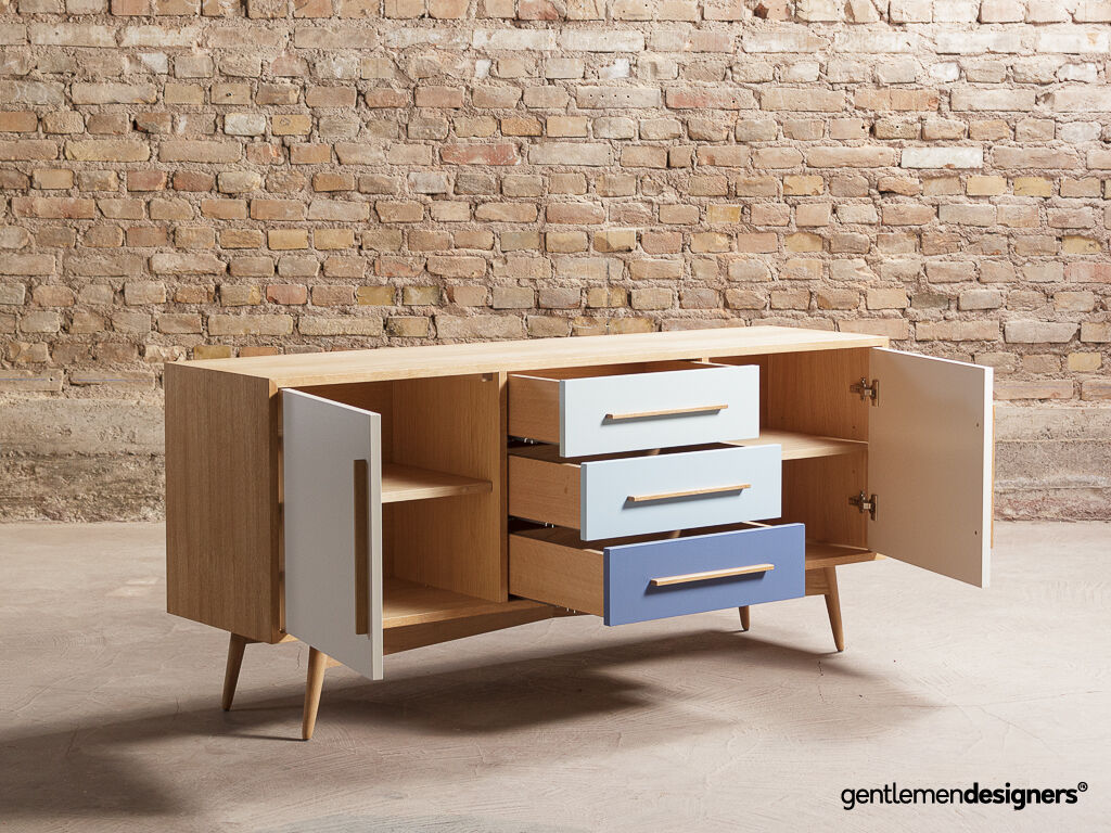 Enfilade / Buffet bas en chêne composé de 3 tiroirs et 2 portes battantes