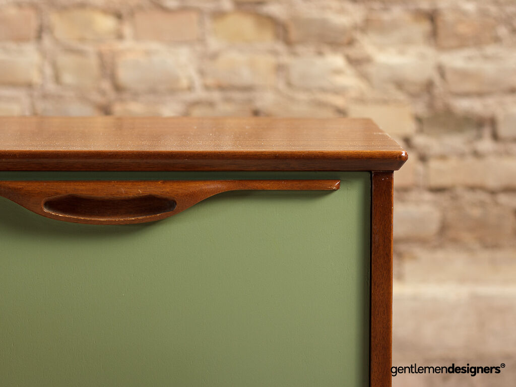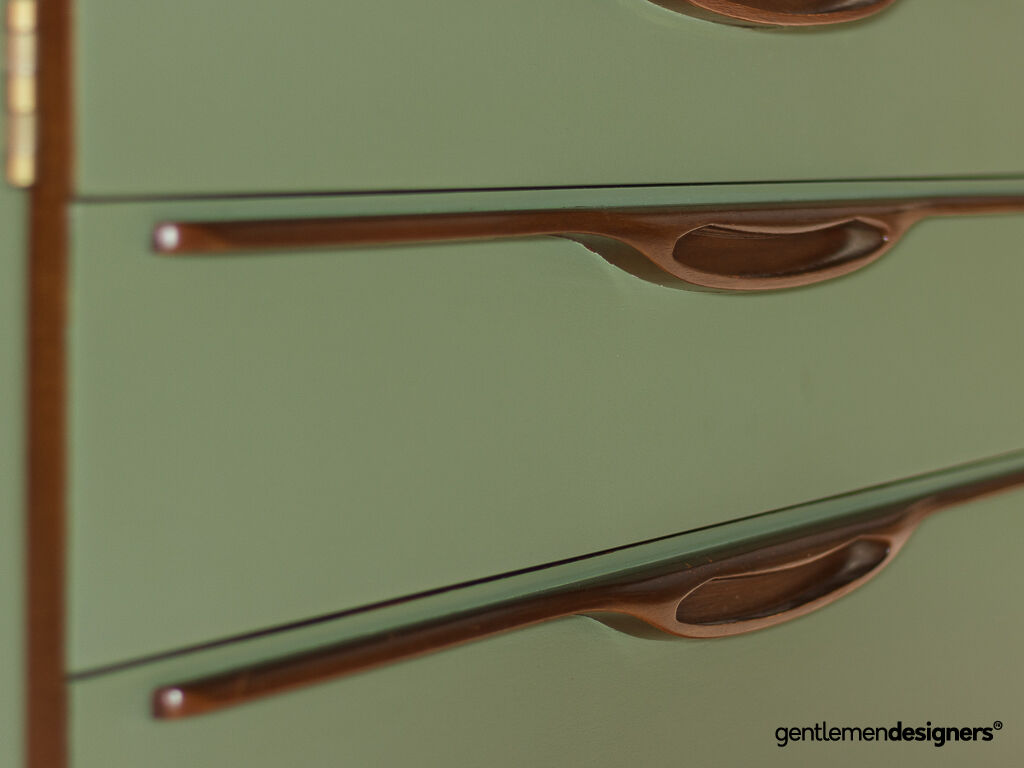 Finitions : Portes et tiroirs peints en couleur vert asperge
