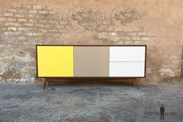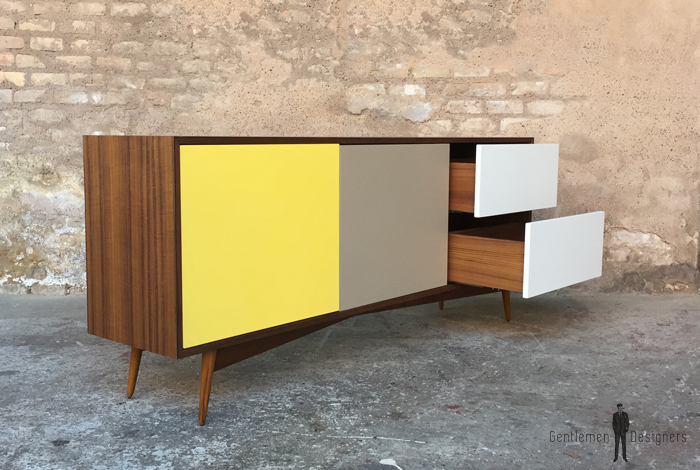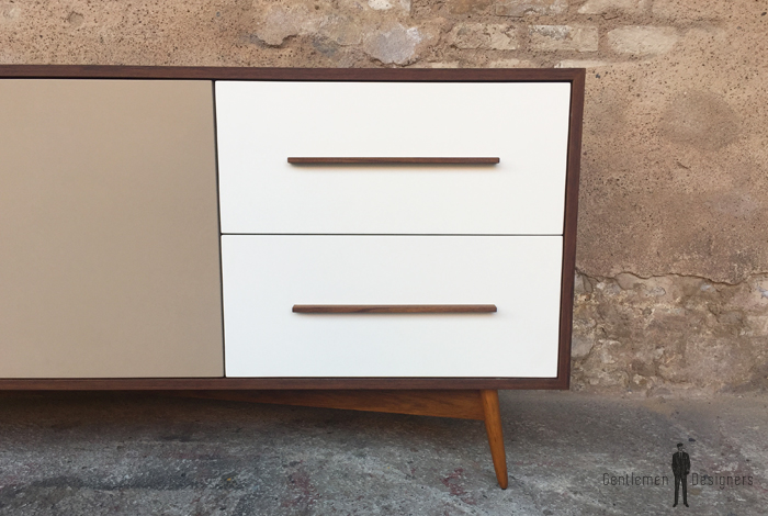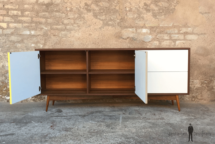 Enfilade en teck comprenant 2 portes battantes et 2 tiroirs