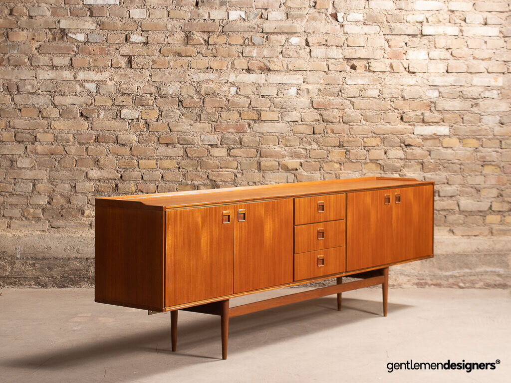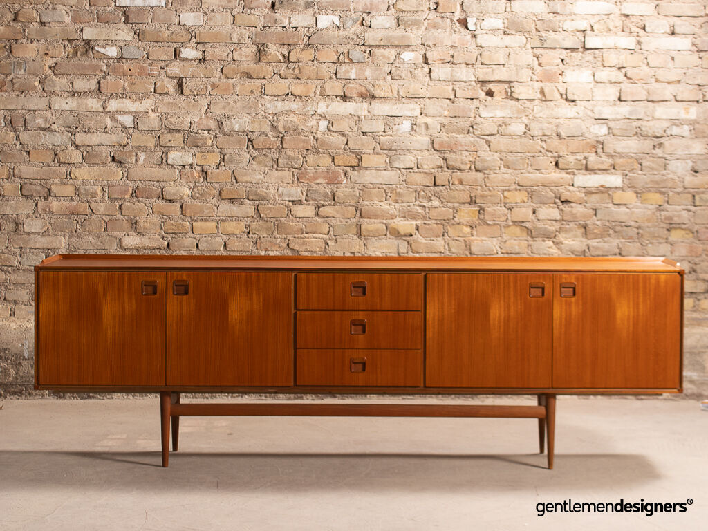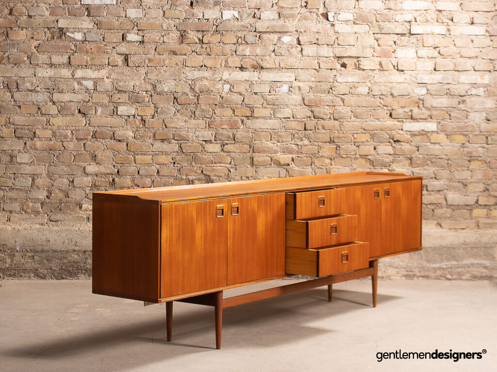 L’enfilade scandinave en teck est, depuis les années 60, l’incontournable de nos intérieurs ! De part sa taille importante, vous pourrez y ranger toute votre vaisselle, vos belles bouteilles, votre argenterie et encore bien d’autres choses. Ce long buffet en teck est composé de trois tiroirs et de quatre grands espaces de rangement. Elle saura trouver une place de choix dans votre intérieur.