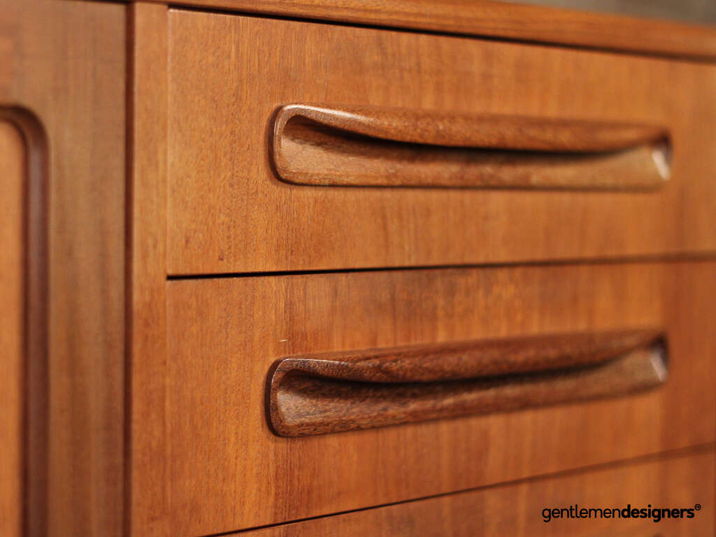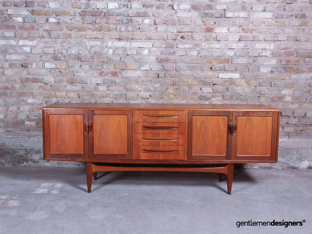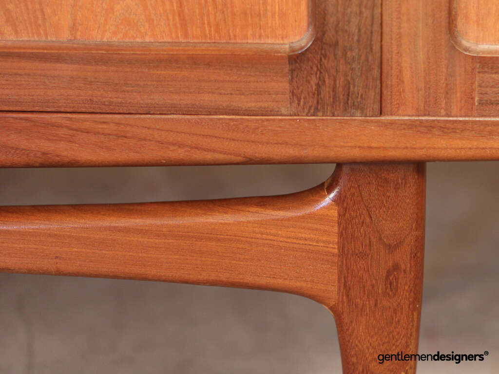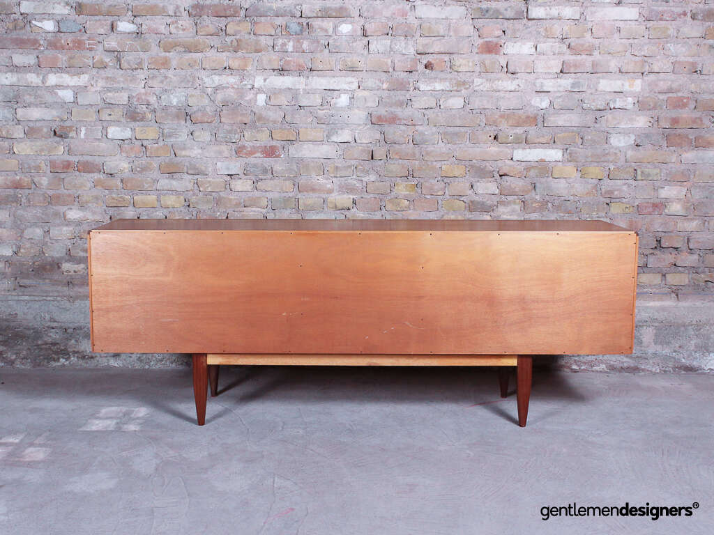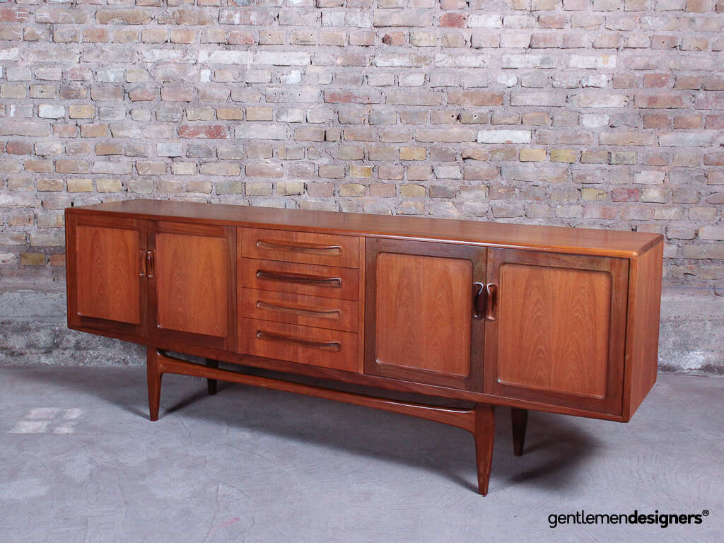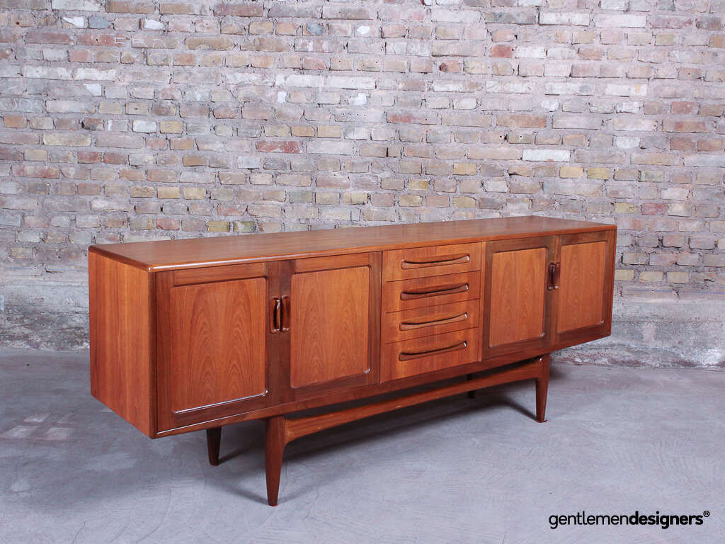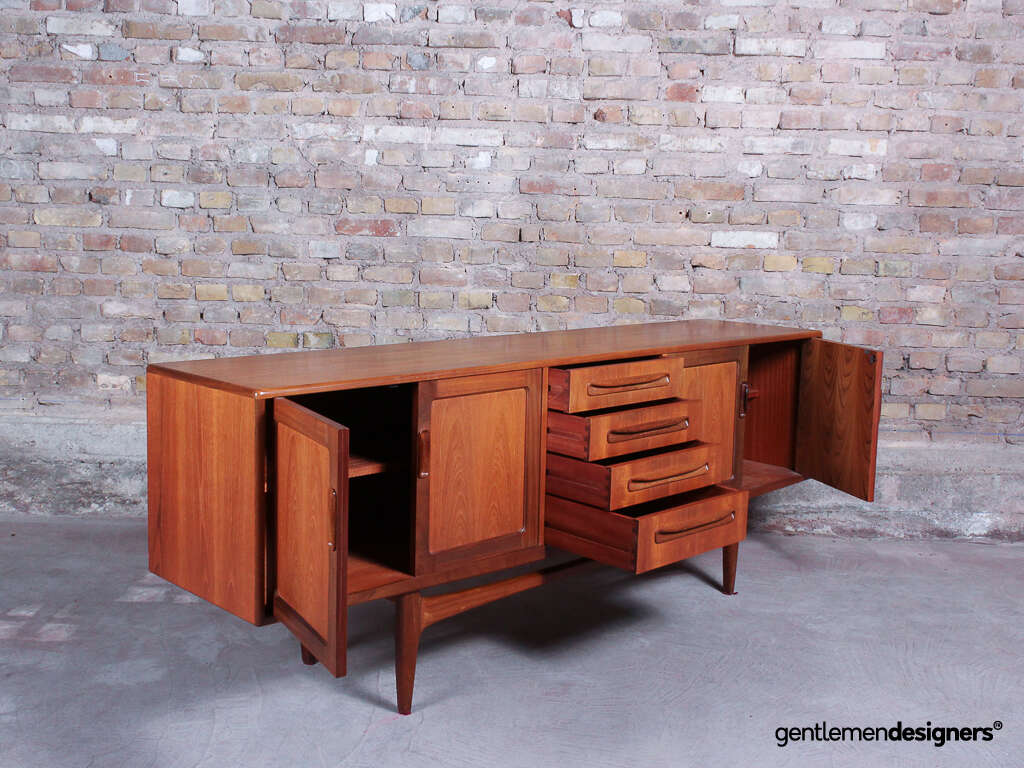 Dimensions : – Largeur : 213 cm – Profondeur : 45,5 cm – Hauteur caisson : 50 cm – Hauteur pieds : 30 cm – Hauteur totale : 80 cm Dimensions tiroir intérieur : – Largeur utile : 43 cm – Profondeur utile : 38 cm – Hauteur utile tiroir : 8,5 cm (1,2,3) / 11,5 cm (4) Dimensions portes intérieur : – Largeur utile : 80 cm – Profondeur utile : 40,5 cm – Hauteur utile : 44,5 cm Designer : Ib Kofod-LarsenEditeur : G-PLAN