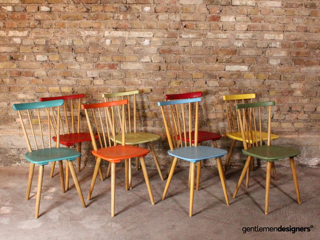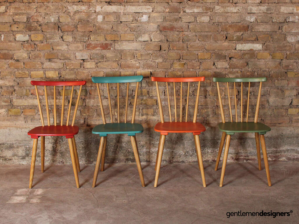 Ensemble de chaises à barreaux vintage rénovées et relookées