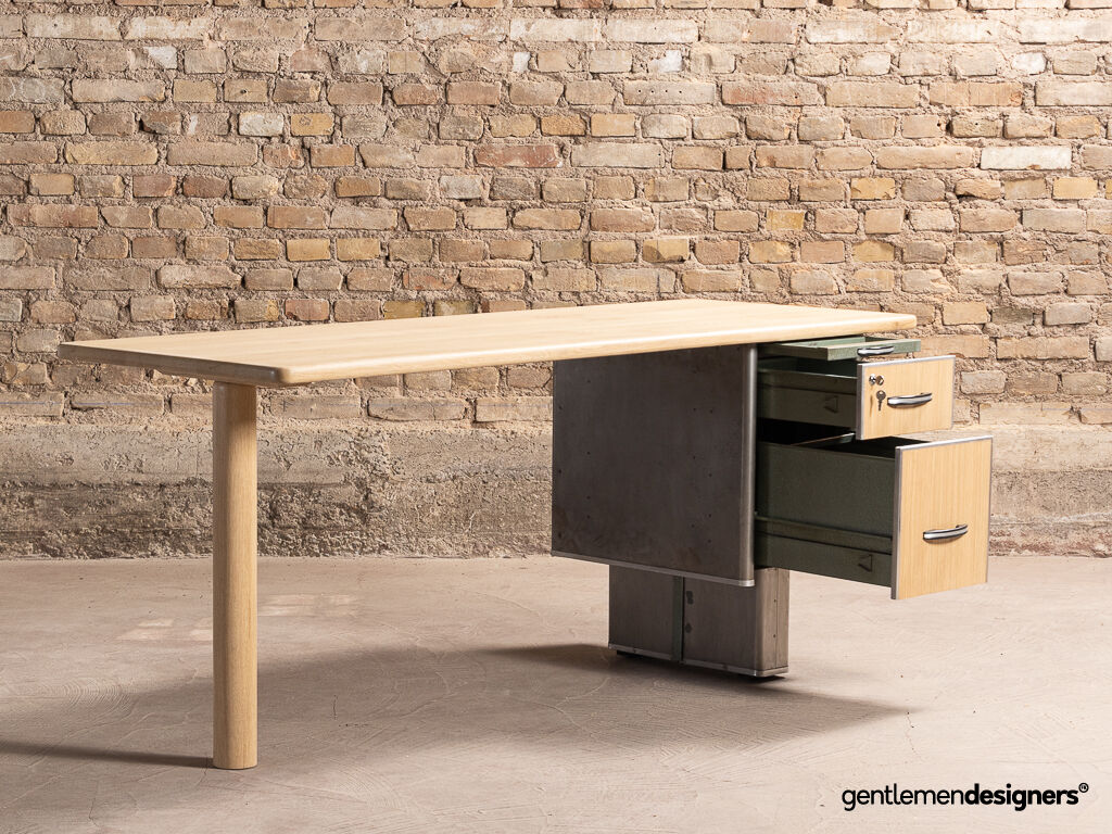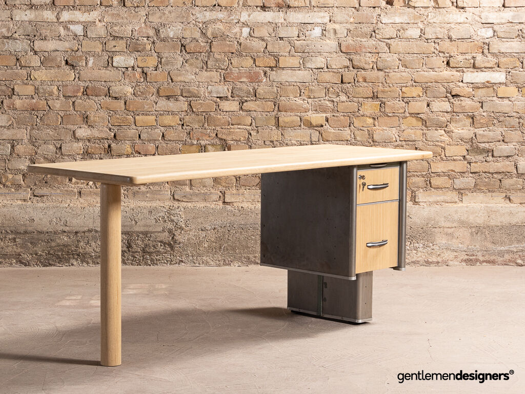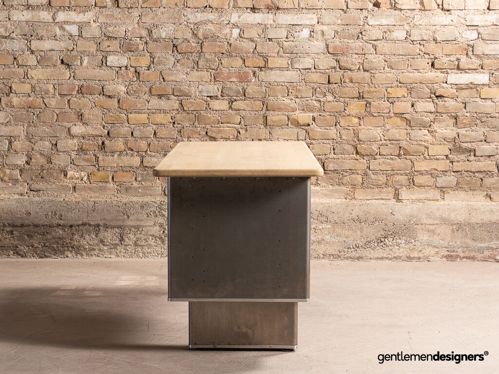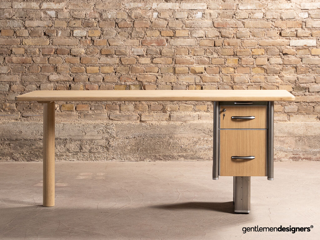 Grand bureau industriel revisité avec un plateau en chêne massif sur-mesure
