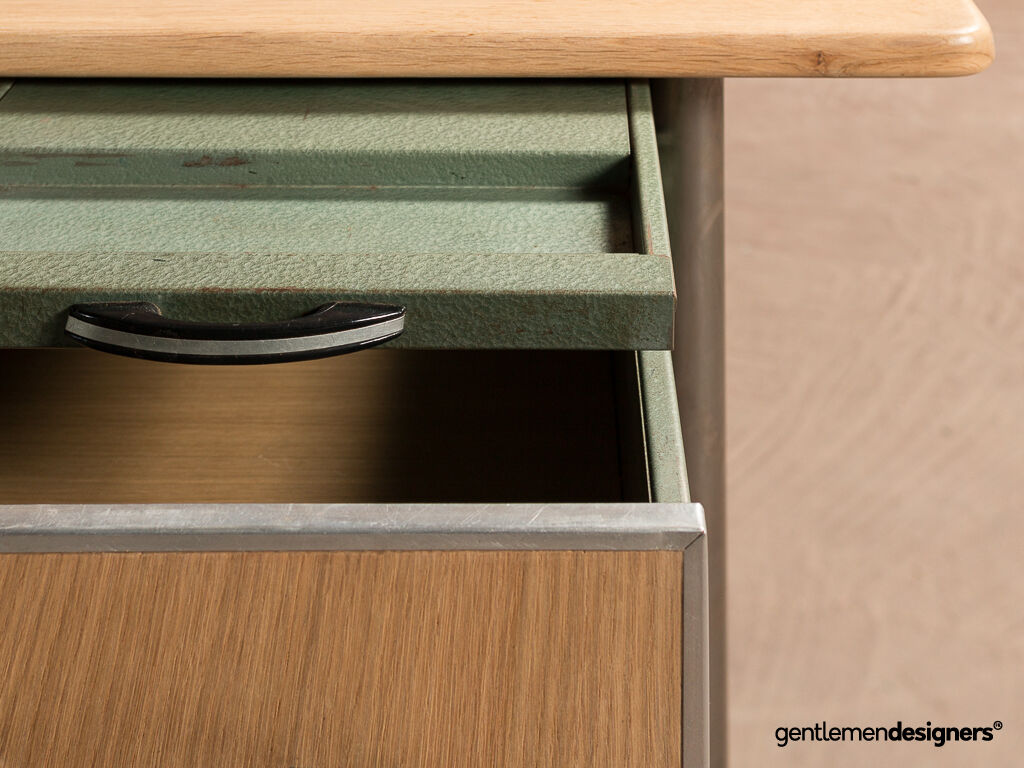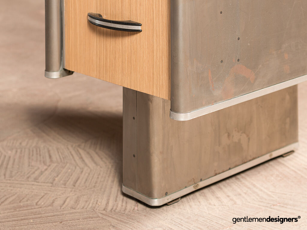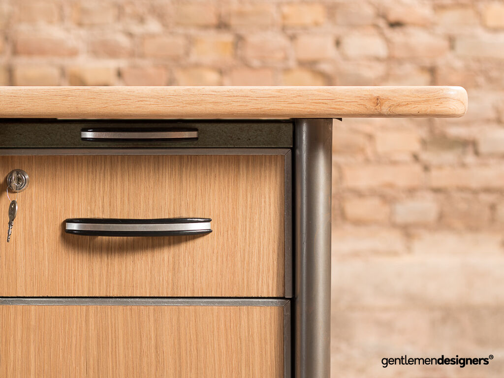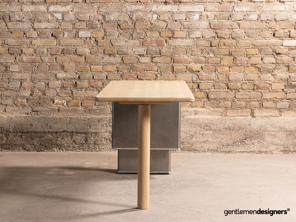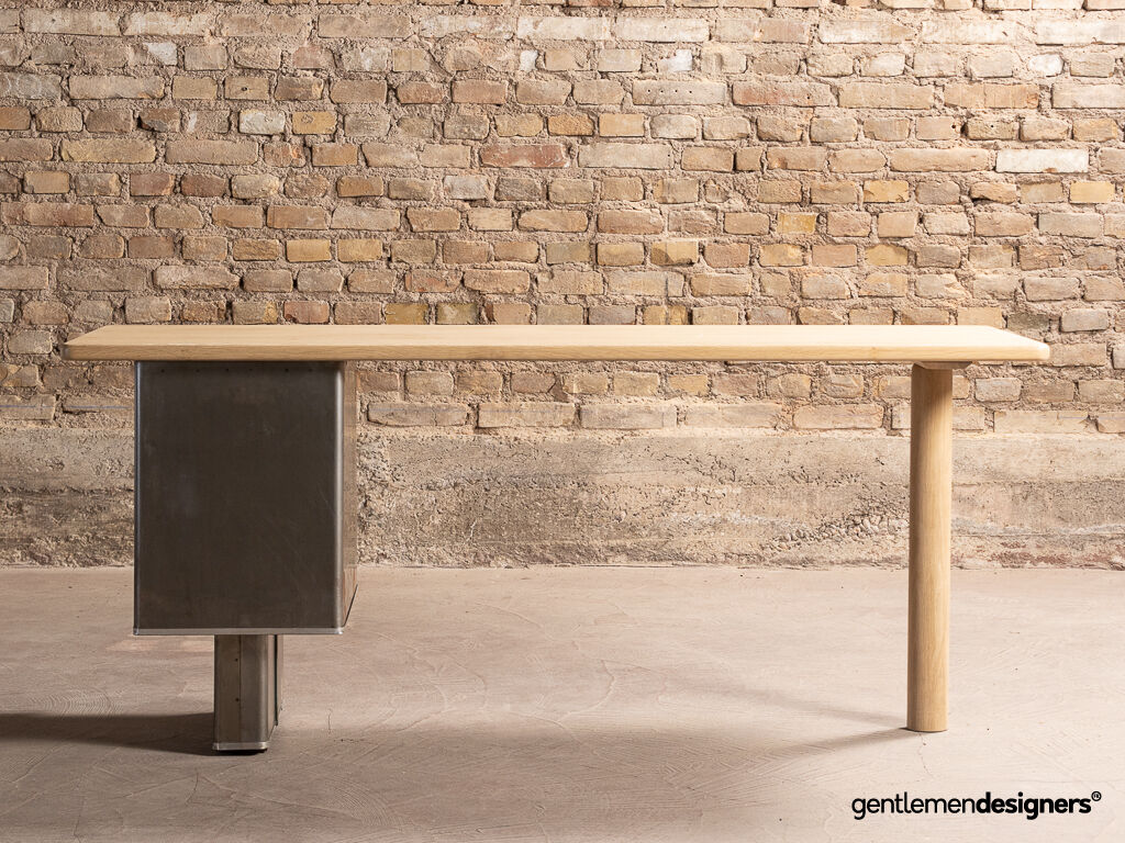 Grand bureau industriel revisité avec un plateau en chêne massif sur-mesure