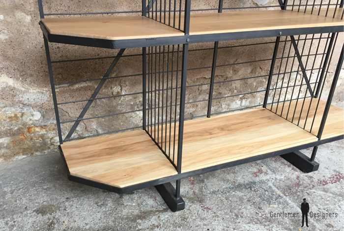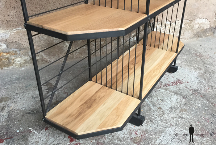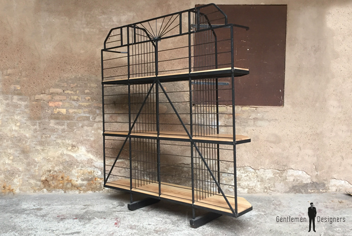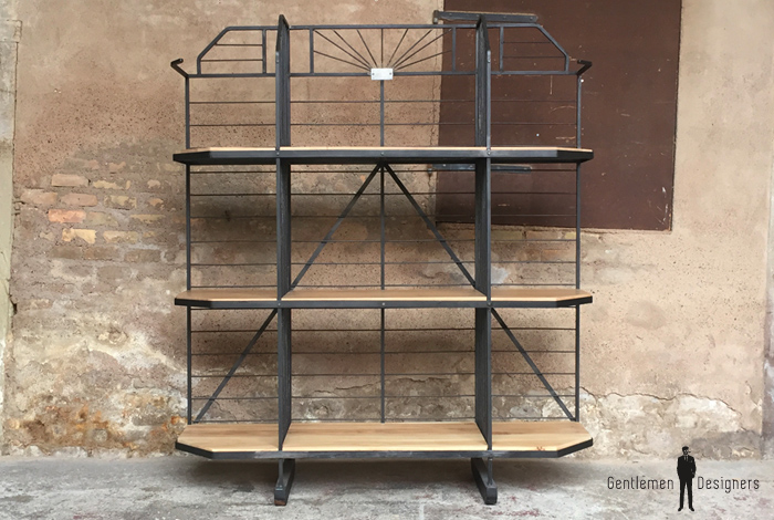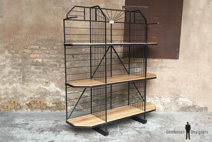 Étagères bibliothèque, ancien présentoir de boulanger, meuble de métier