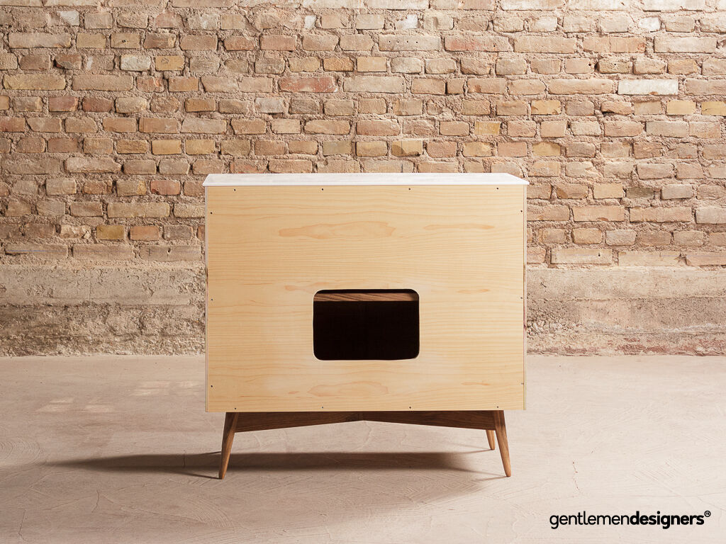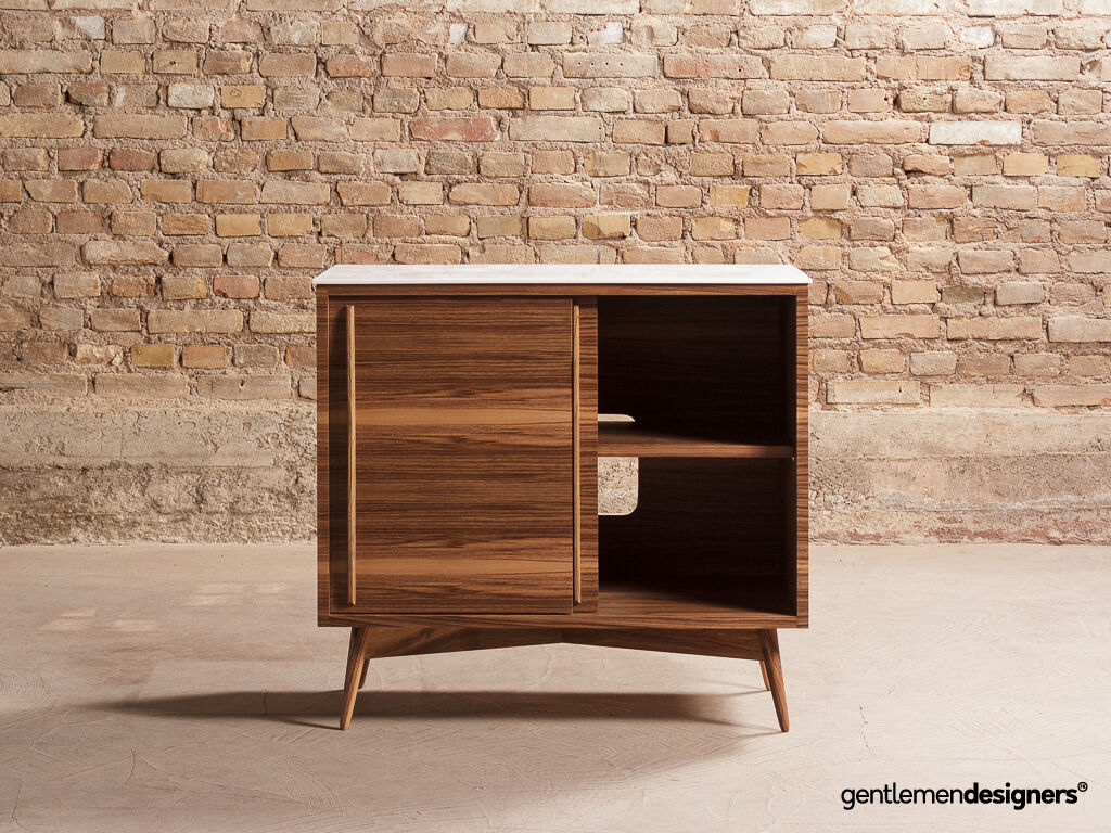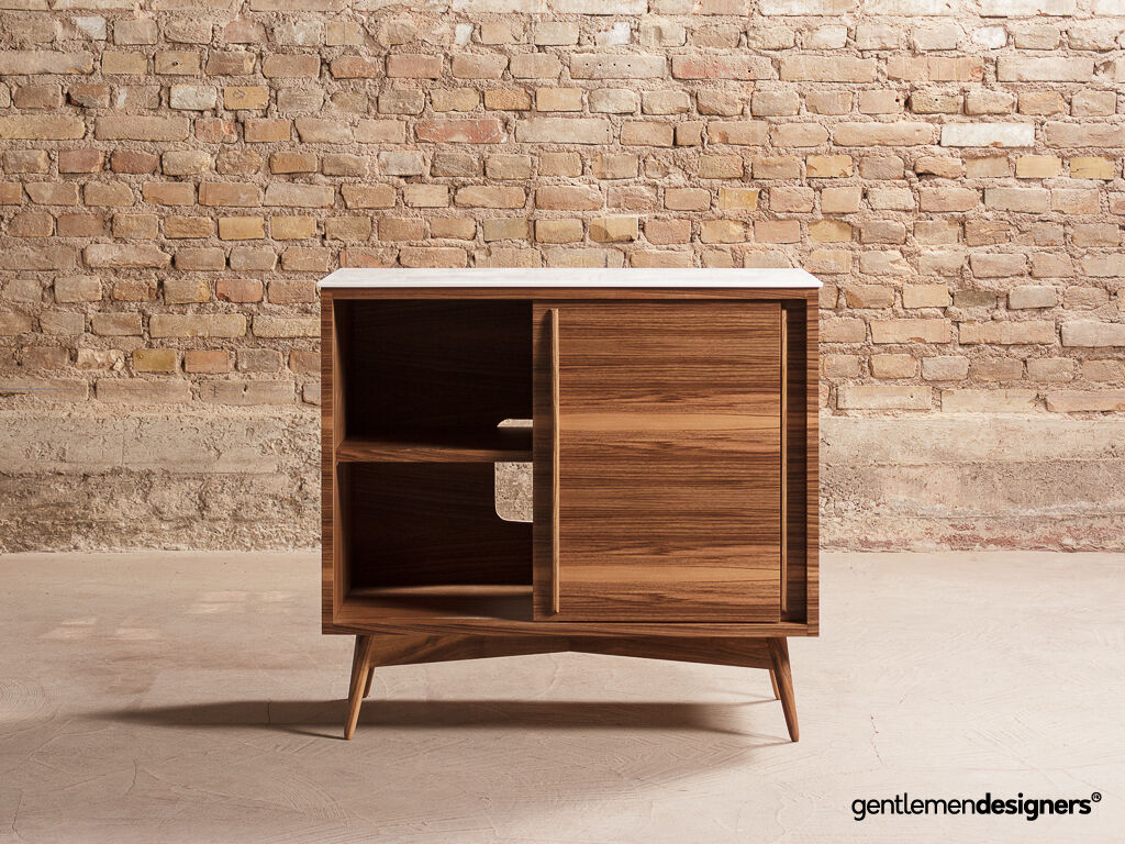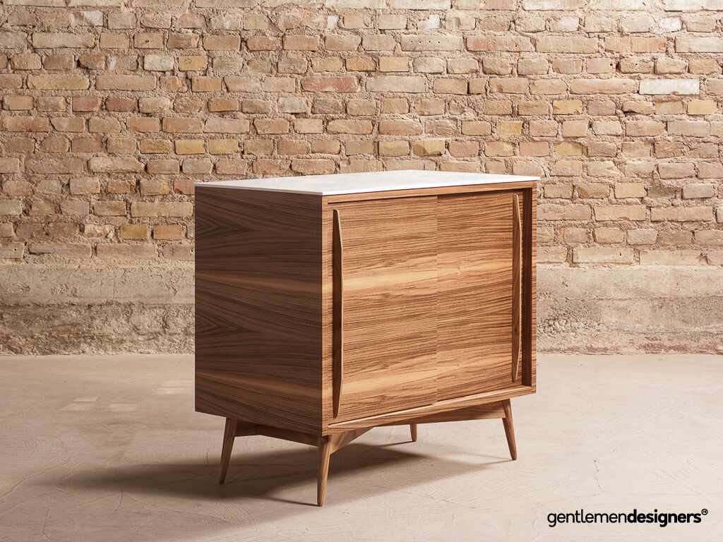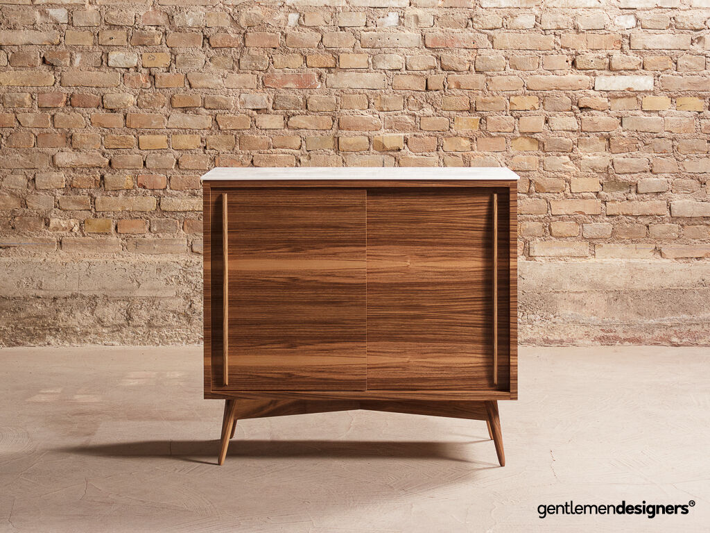 – Piétement et poignées en noyer massif teinté