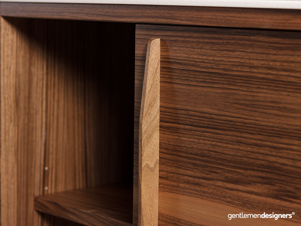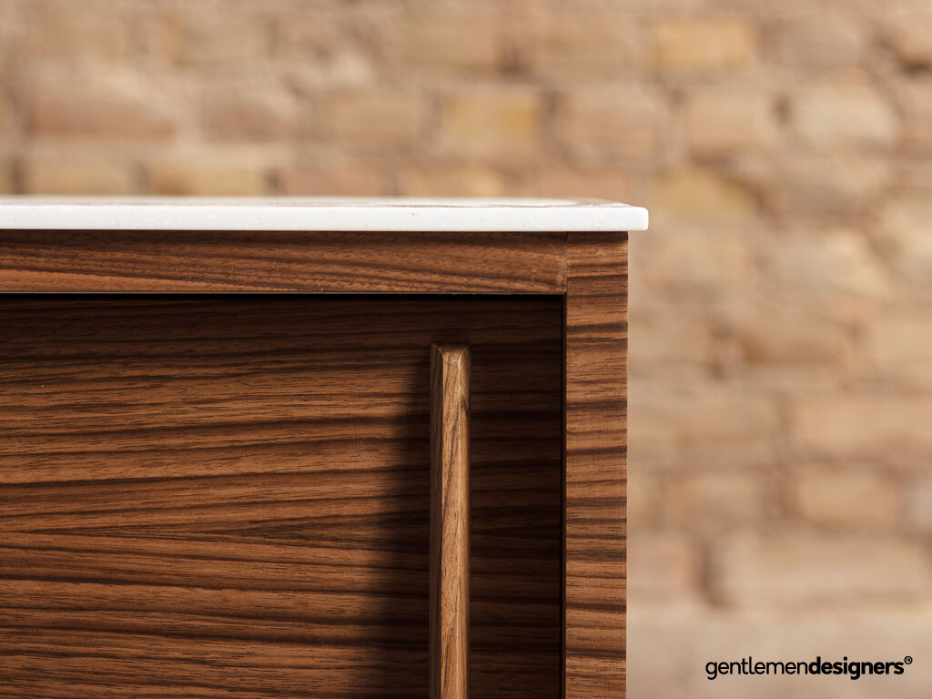 Meuble de salle de bain sur-mesure en noyer avec un plan de travail en varicor