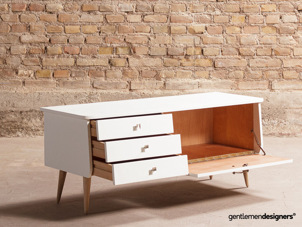 – Caisse et tiroirs peints en blanc