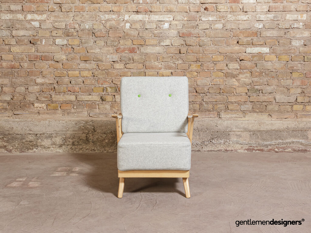 Cette magnifique paire de fauteuils scandinaves a entièrement été restaurée par notre équipe. Chinés puis rénovés : la structure en hêtre a été ponçée puis traitée ; les coussins sont neufs : nous avons sélectionné une densité de mousse adéquate ainsi qu’un tissus de la marque Kvadrat (maison de renommée danoise). Un confort inégalable, pour votre plus grand bonheur !.