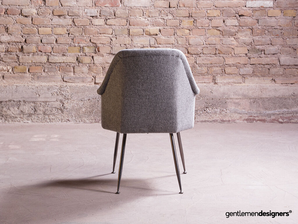 Paire de fauteuils vintage datant des années 1960 entièrement rénovée et retapissée sur-mesure. Les tissus utilisés proviennent de chez Kirk by Design et Kvadrat, des professionnels dans le domaine des tissus d’ameublement. Les pieds compas quant à eux sont en acier très résistant.