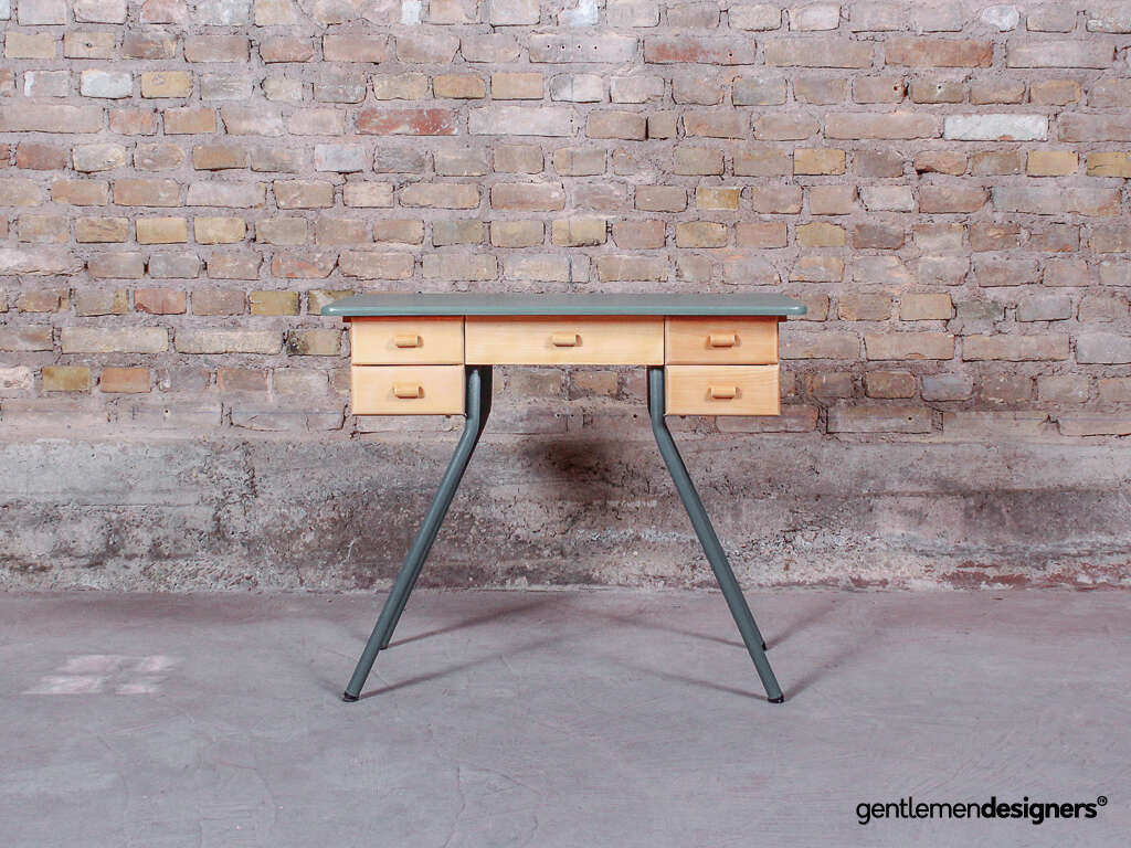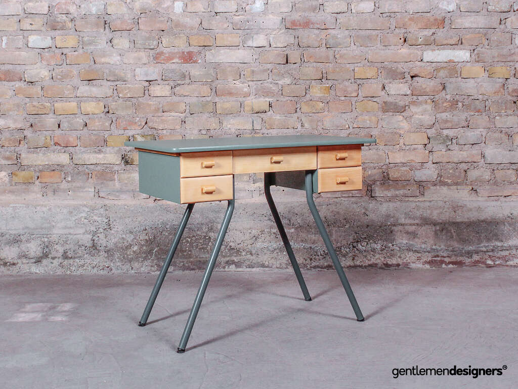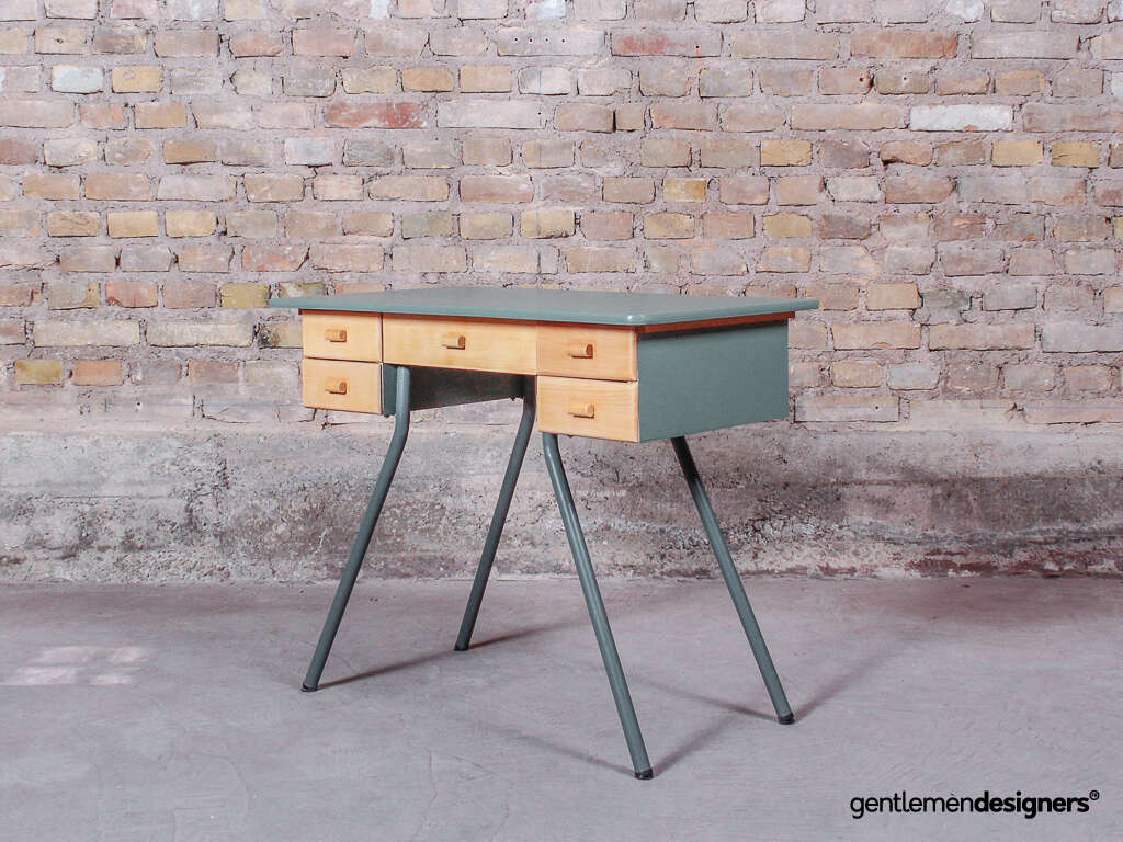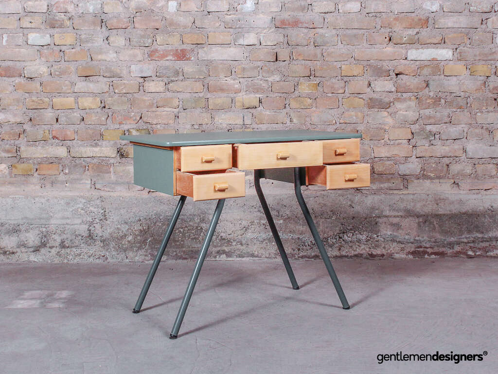 Accueil » Produits » Meubles vintage » Bureau, secrétaire, console » Petit bureau vintage original composé de 5 tiroirs, circa 1960