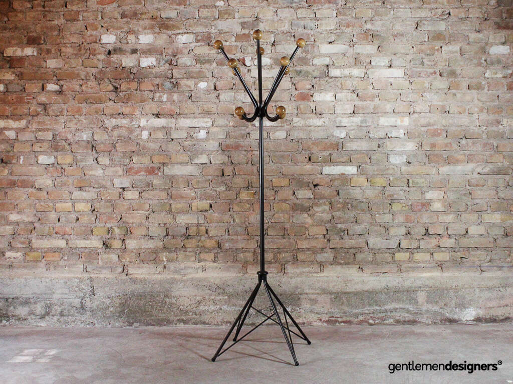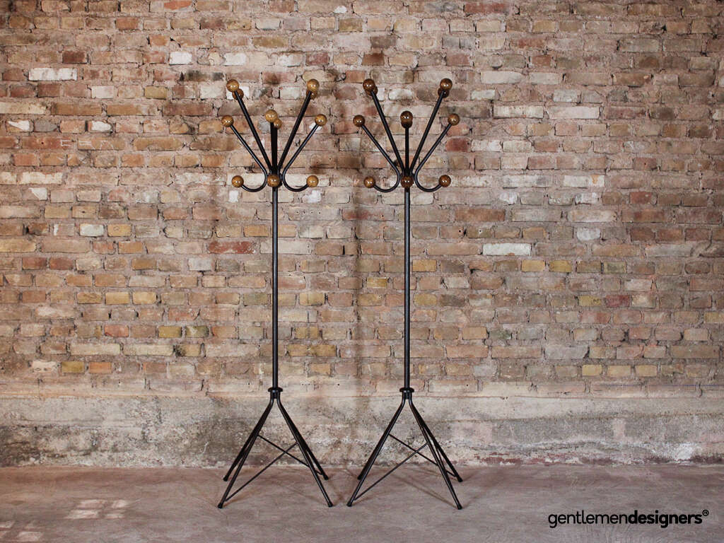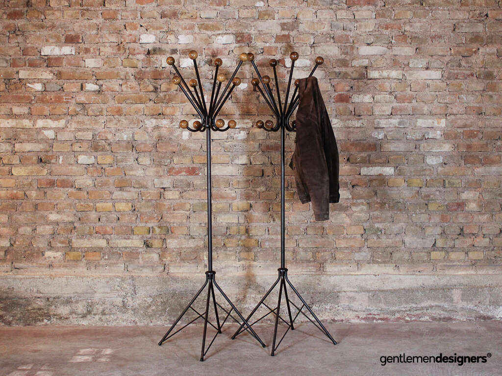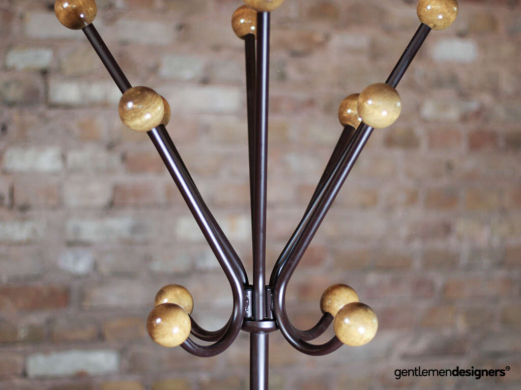 Accueil » Produits » Meubles vintage » Porte manteaux perroquet « 12 boules » vintage, pivotant en bois et acier (2 dispos)