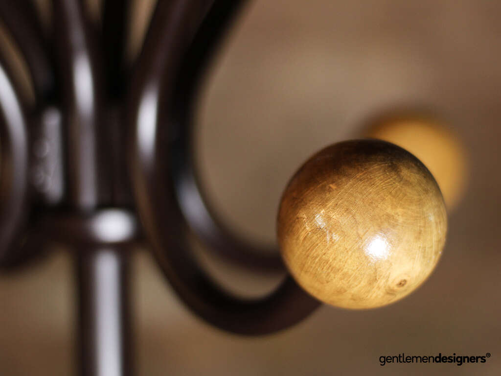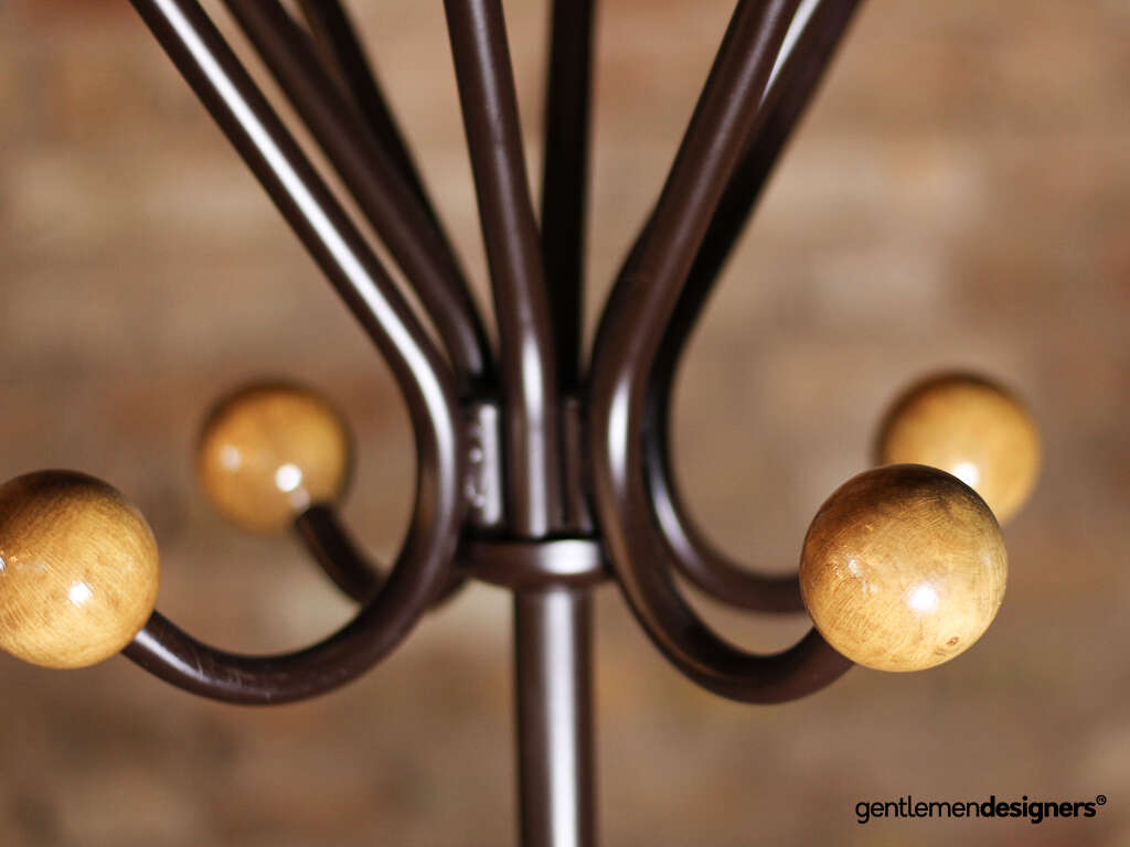 Porte manteaux perroquet « 12 boules » vintage, pivotant en bois et acier (2 dispos)