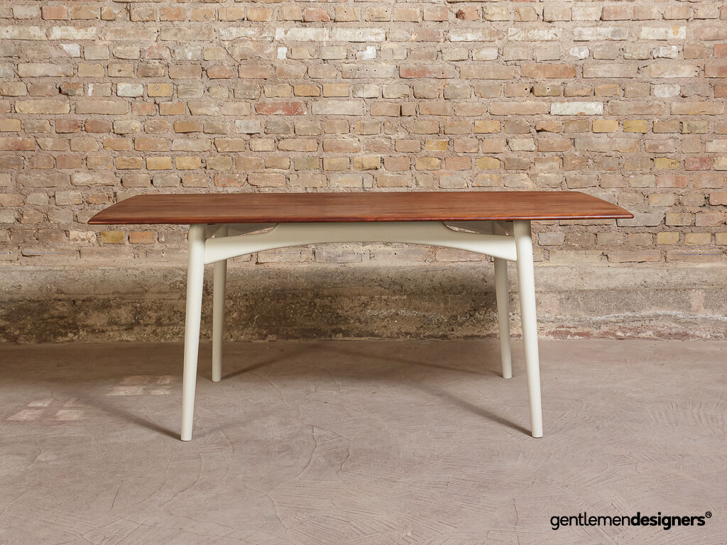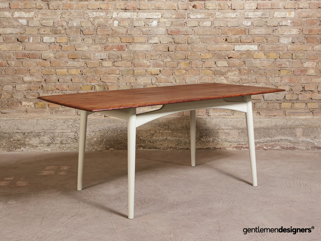 Accueil » Produits » Meubles vintage » Table » Table à manger » Table à manger ou bureau scandinave en teck avec piétement relooké en gris clair, circa 1960