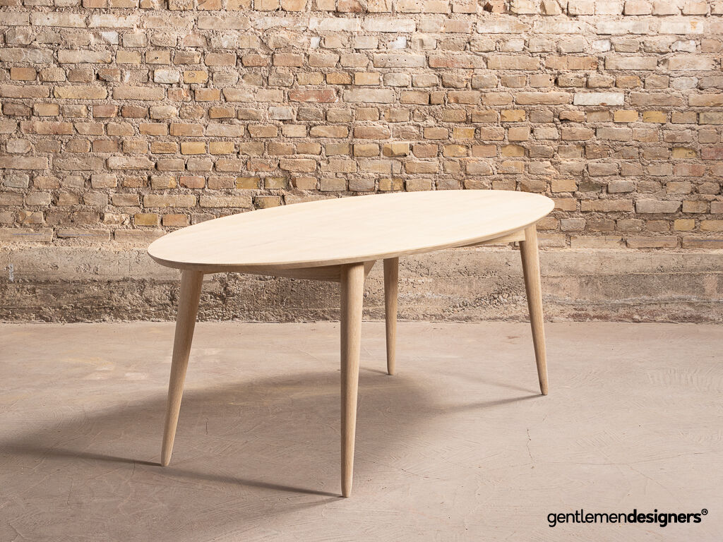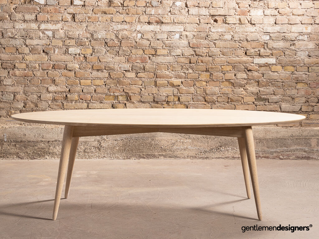 Accueil » Produits » Meubles sur-mesure » Table » Table à manger ovale sur-mesure en chêne massif