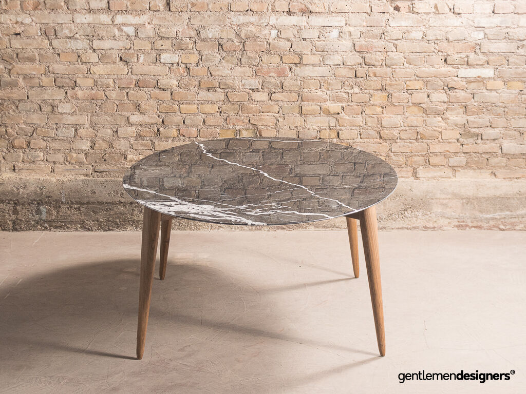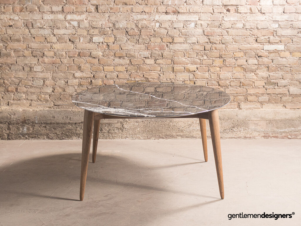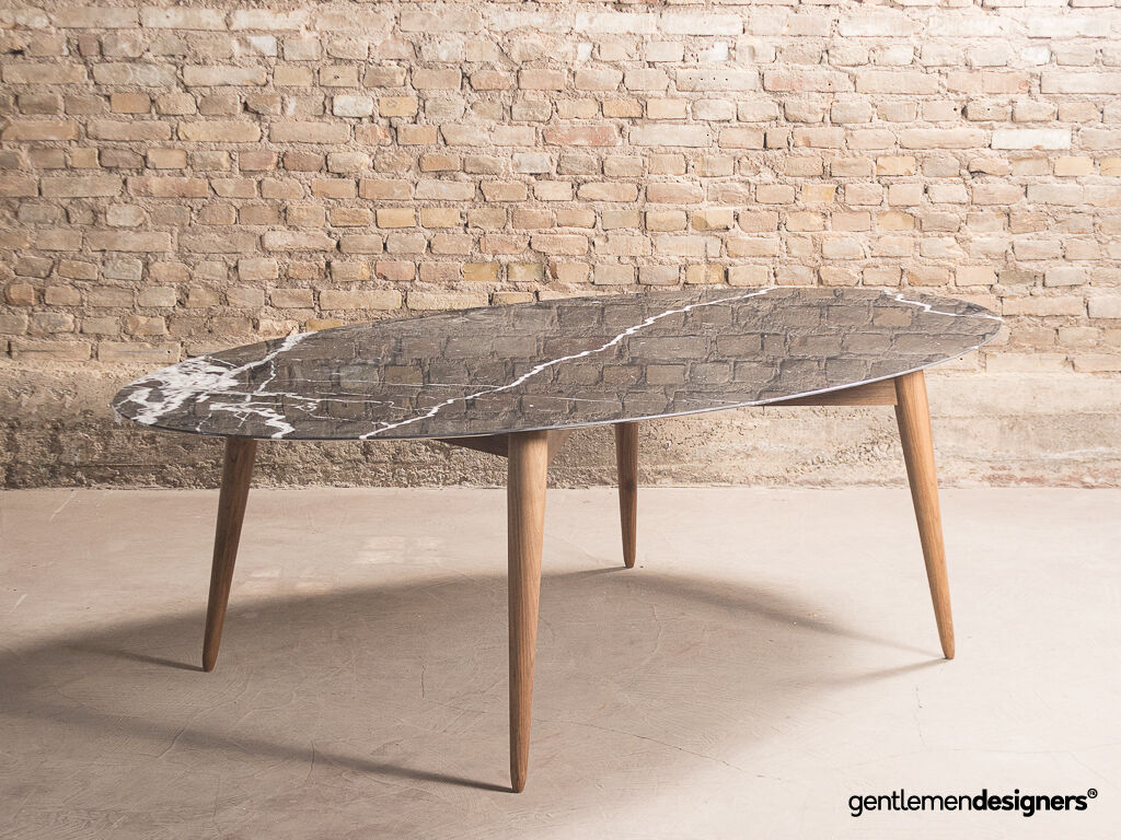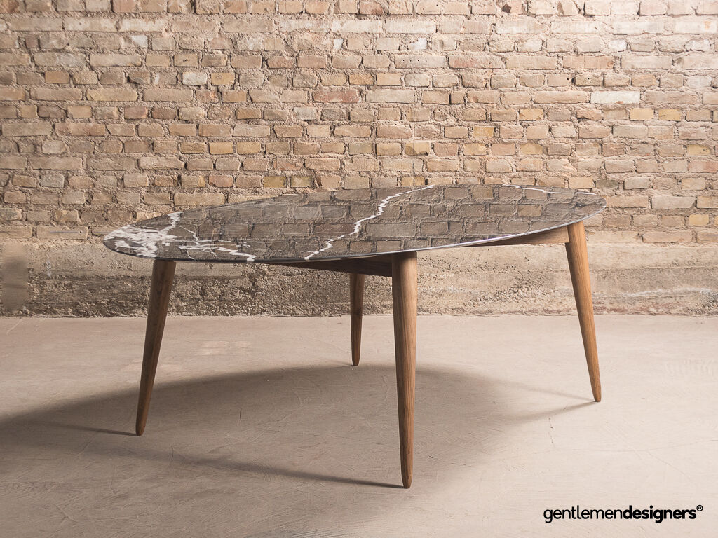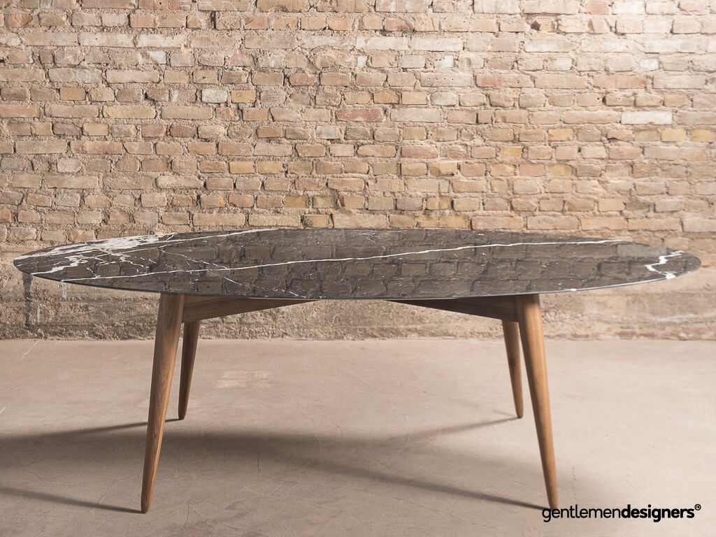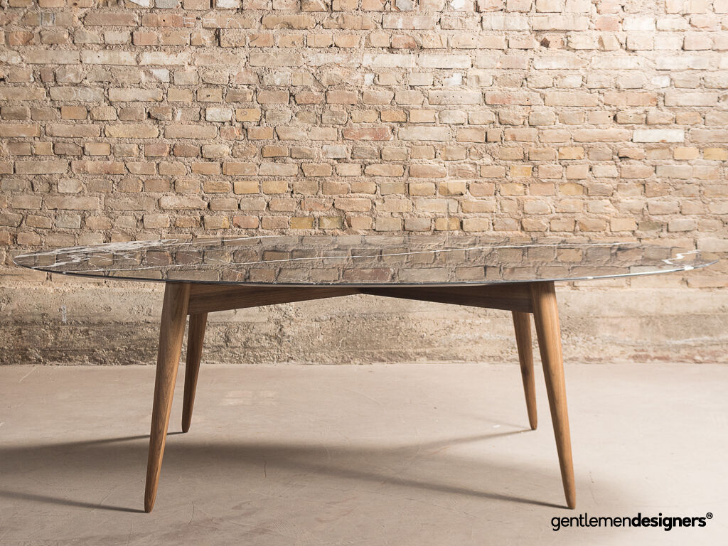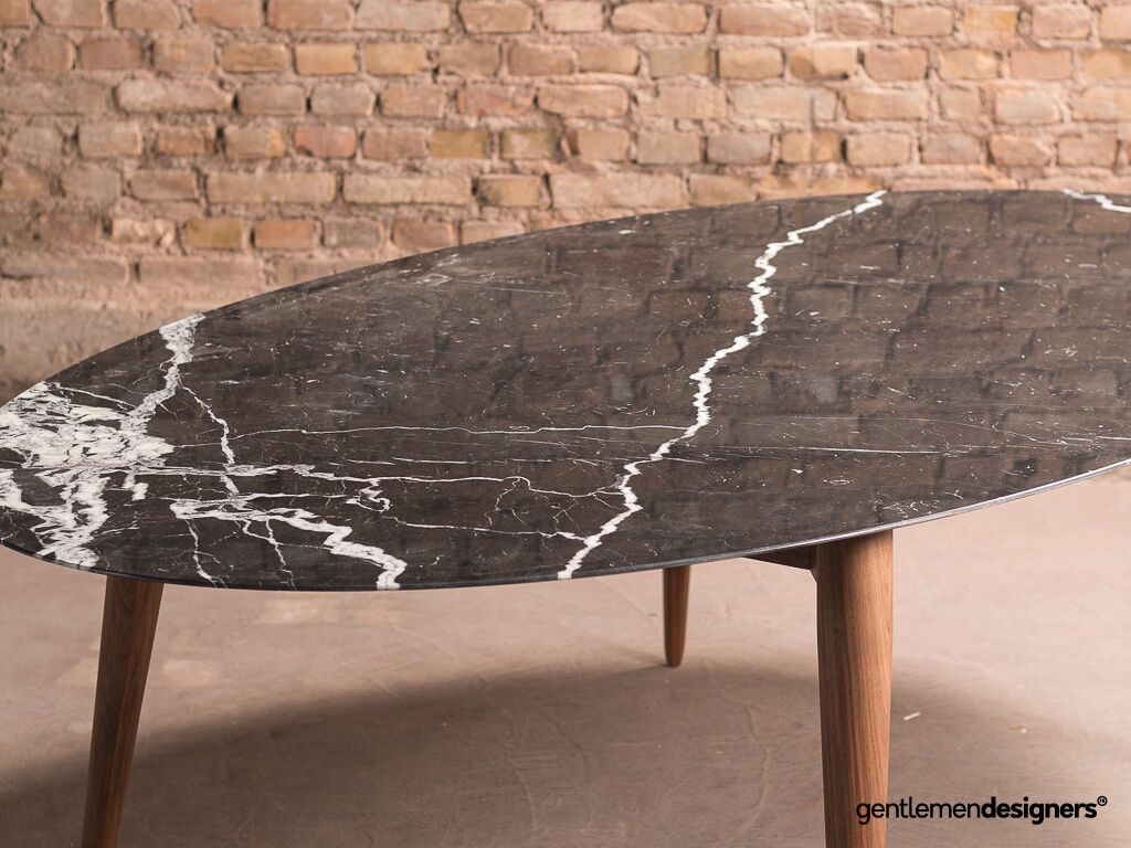 Table à manger en marbre et noyer, possibilité de sur-mesure :