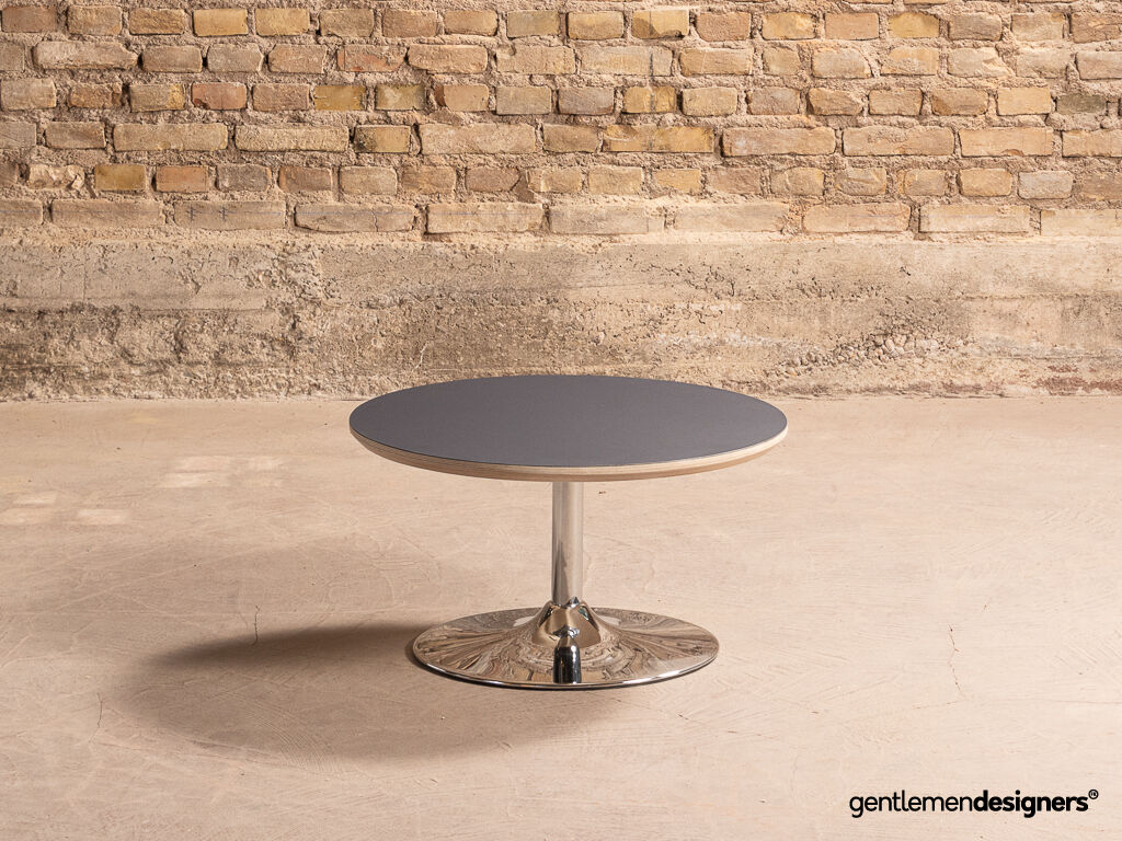 Accueil » Produits » Meubles vintage » Table » Table basse ronde avec un pied tulipe en métal chromé