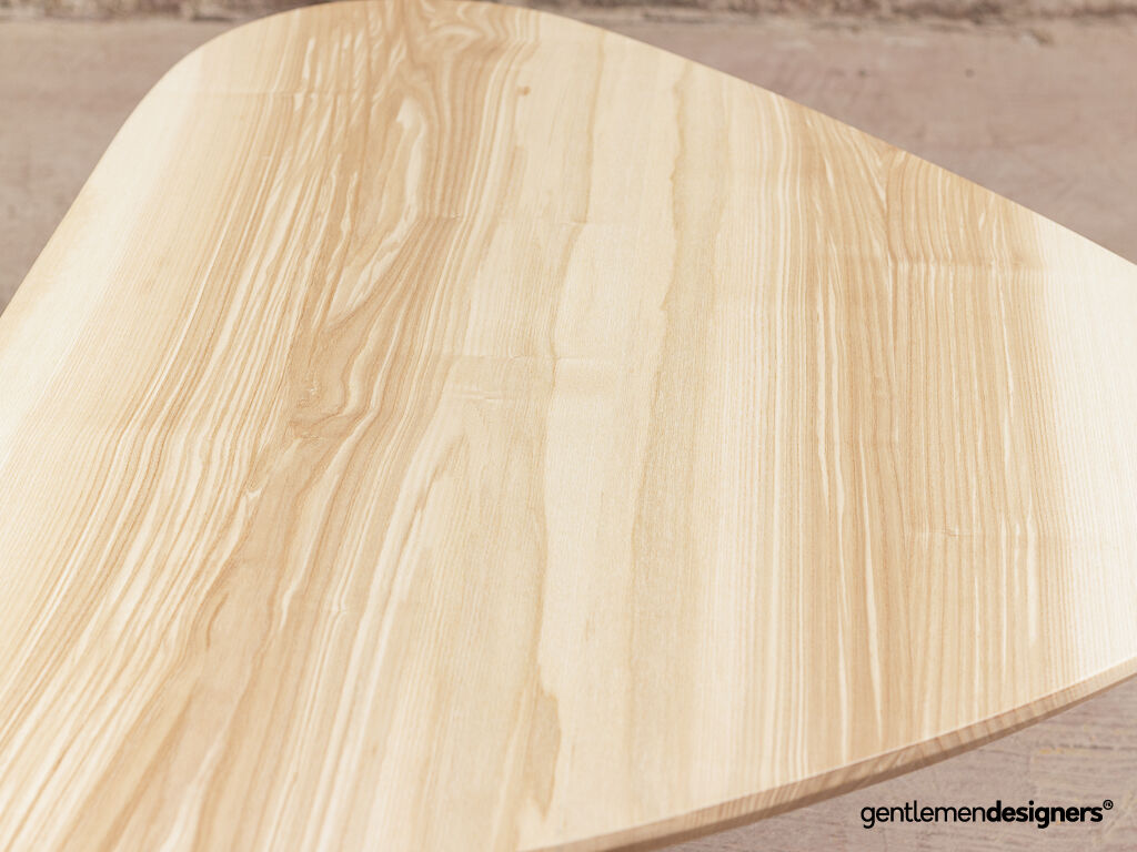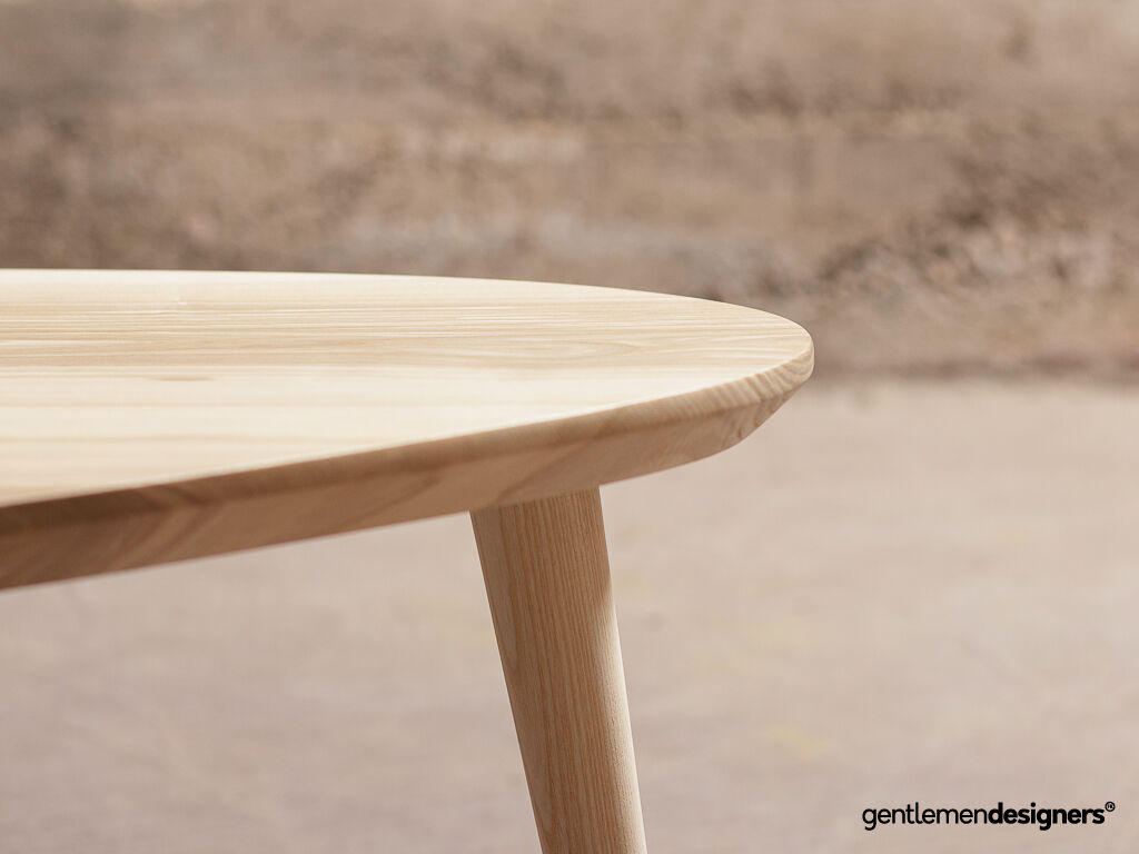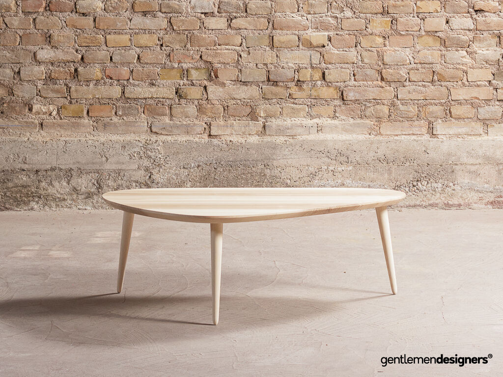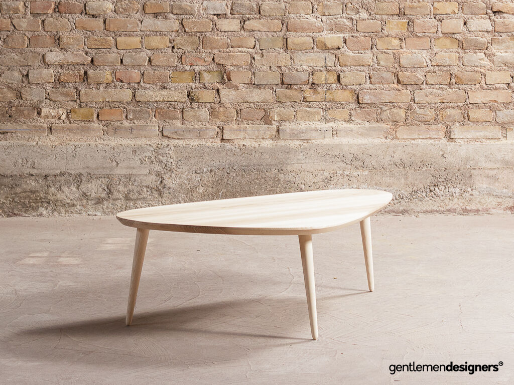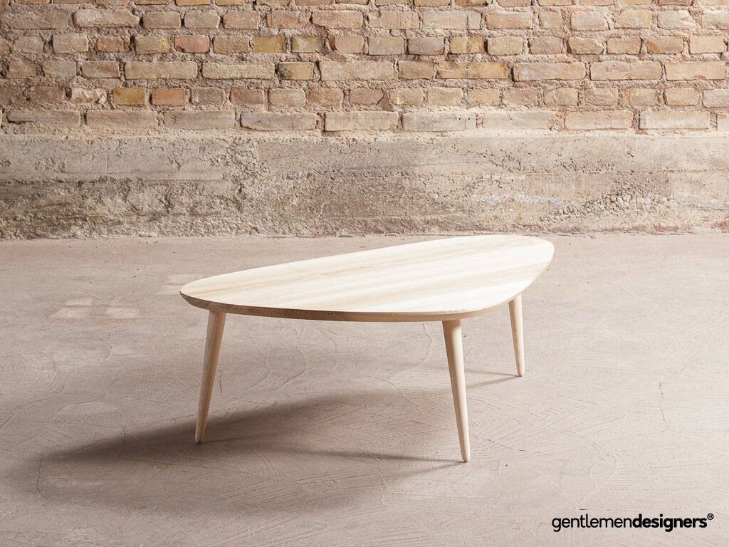 Table basse tripode classique + sur-mesure avec pieds compas, en frêne massif (110x70cm)
