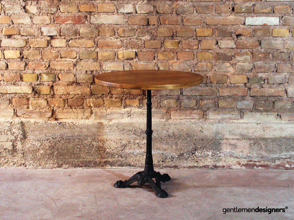 Table bistrot, plateau rond en chêne massif et pied en fonte noir