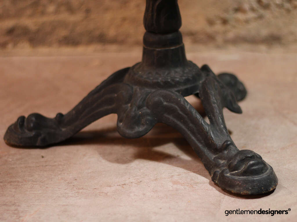 Accueil » Produits » Meubles vintage » Table bistrot, plateau rond en chêne massif et pied en fonte noir