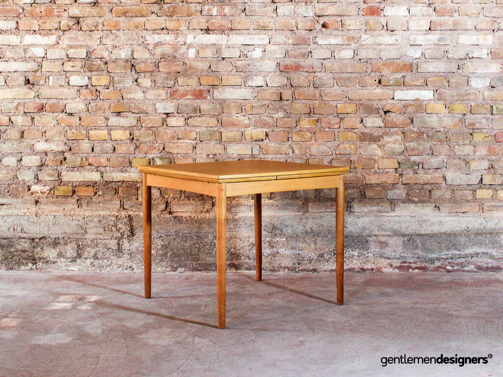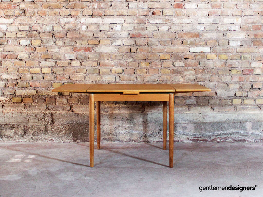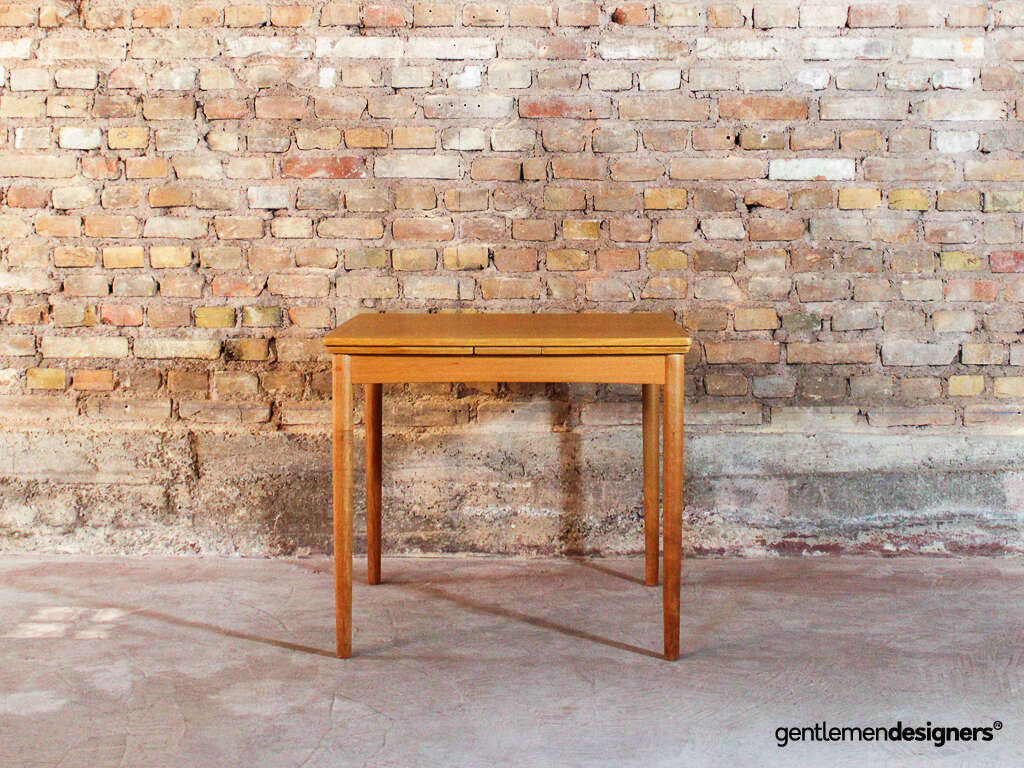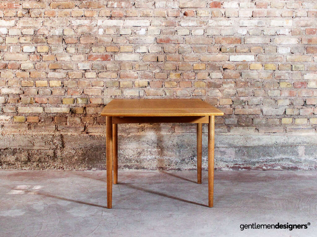 Table vintage carré en chêne massif avec 2 rallonges intégrés