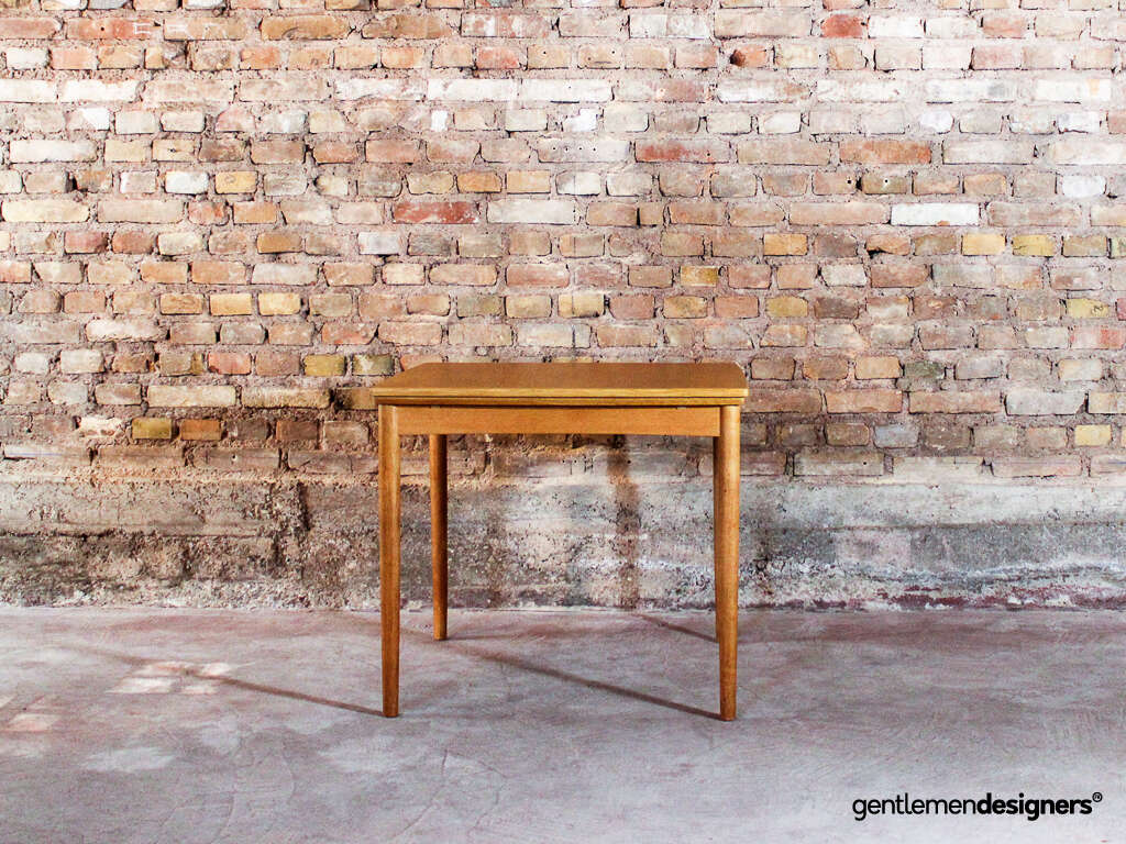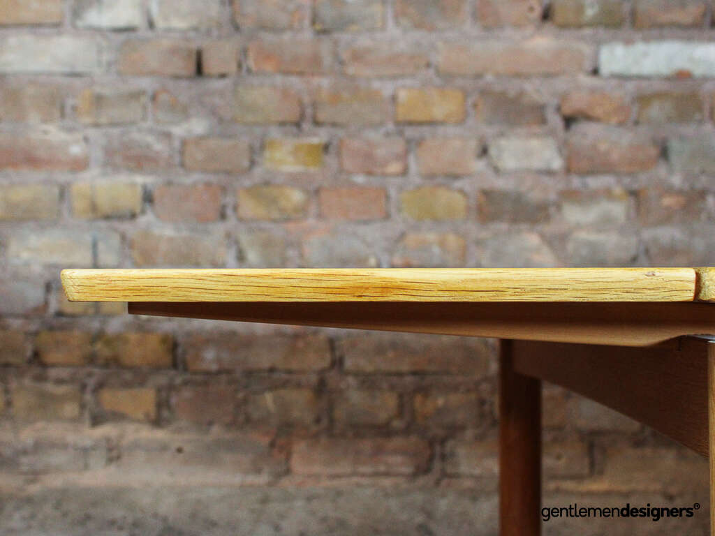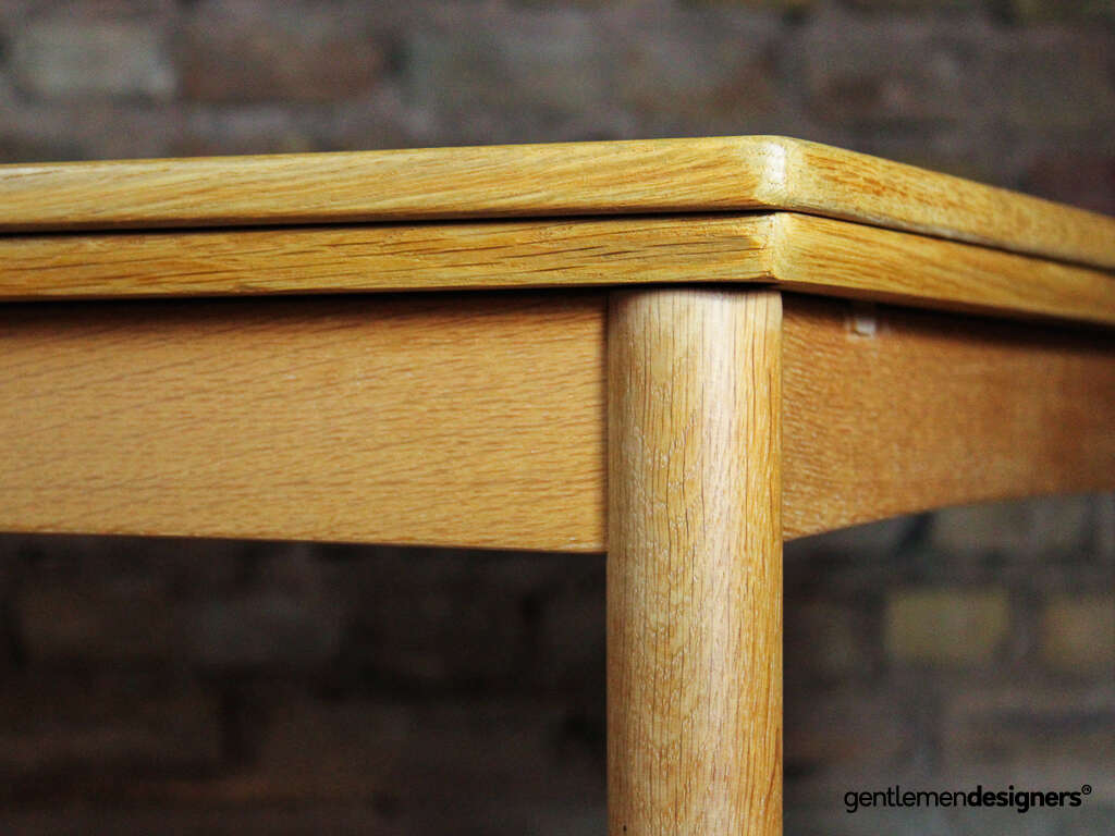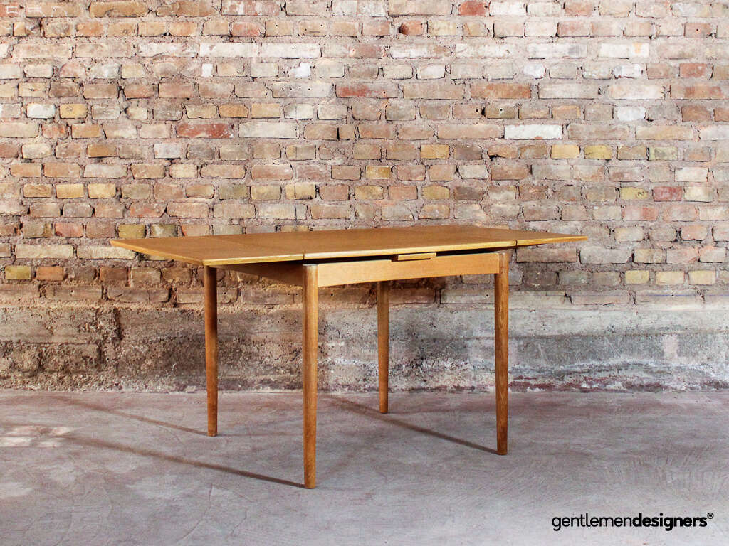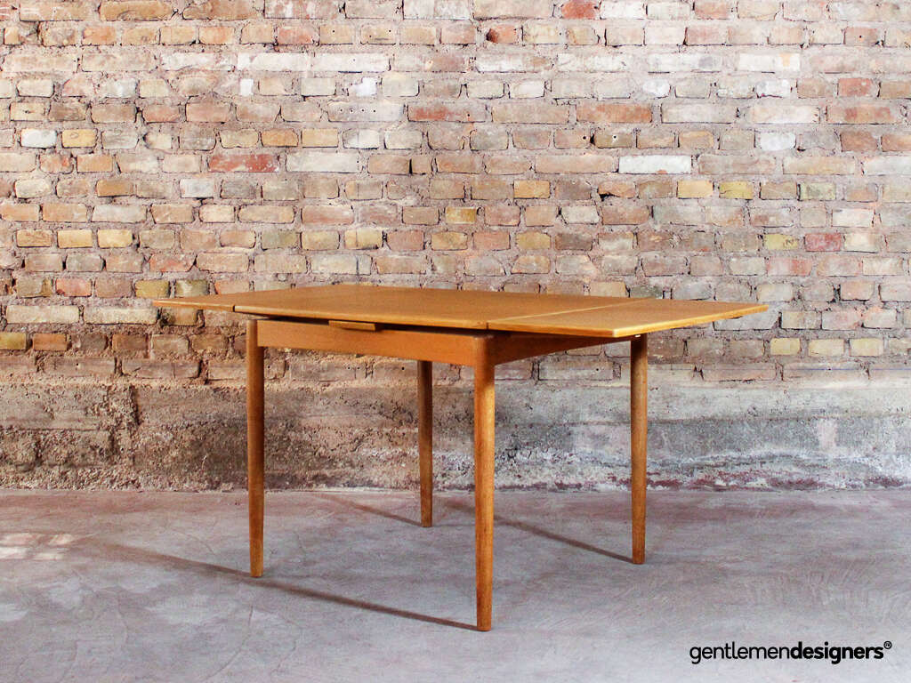 Table vintage carré en chêne massif avec 2 rallonges intégrés